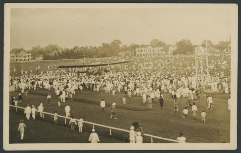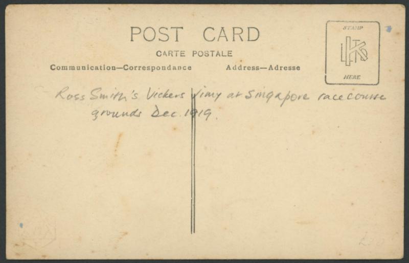 the Vickers 'Vimy' after landing at Singapore Racecourse; and 2) the 'Vimy' in front of the Racecourse Grandstand; minor blemishes on the address sides, unused. Not previously seen by us and possibly unique.