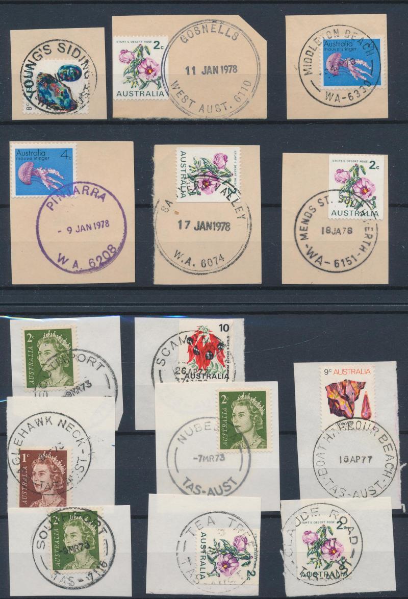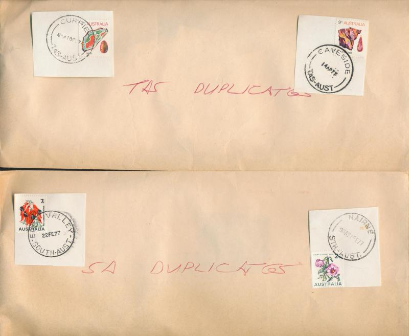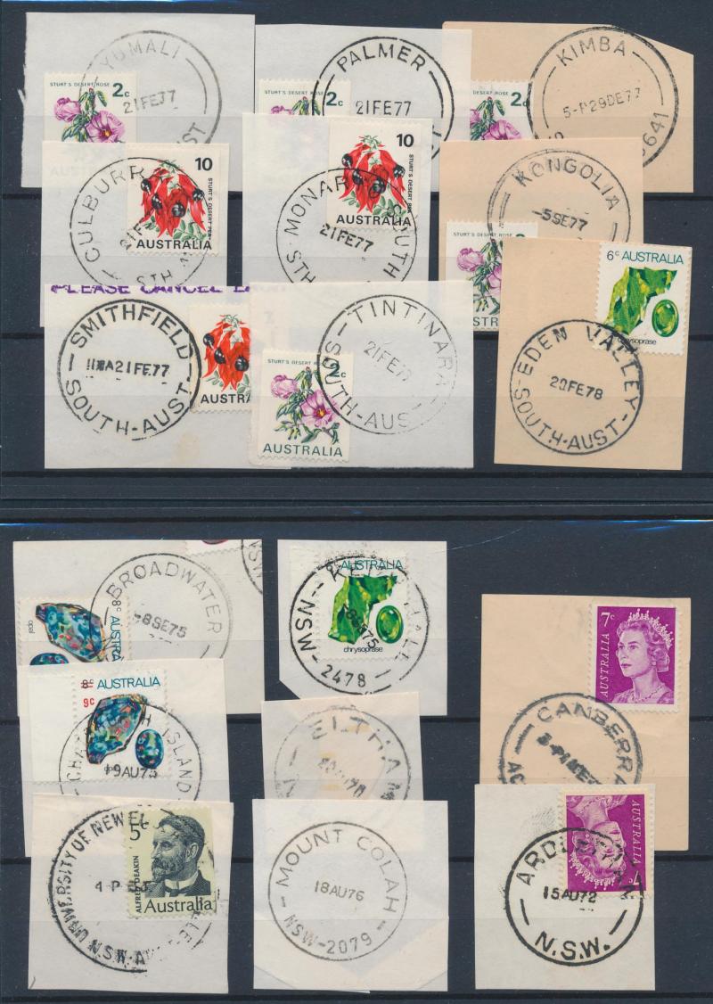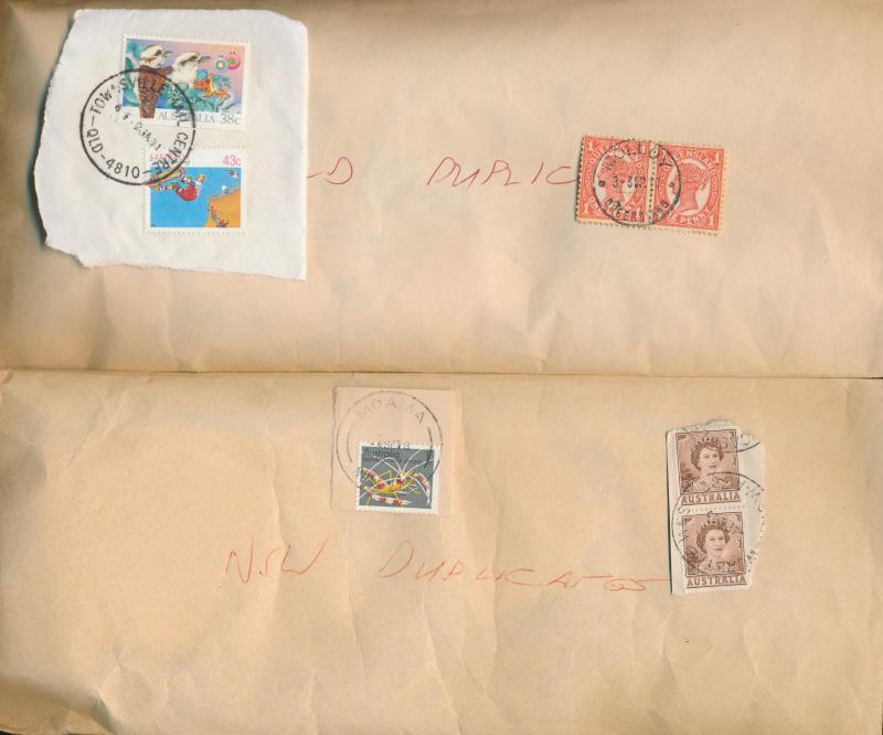 POSTMARKS: Collector's duplicates mostly from the 1970s-1980s & the majority on-pieces cut-square, the best section is Queensland