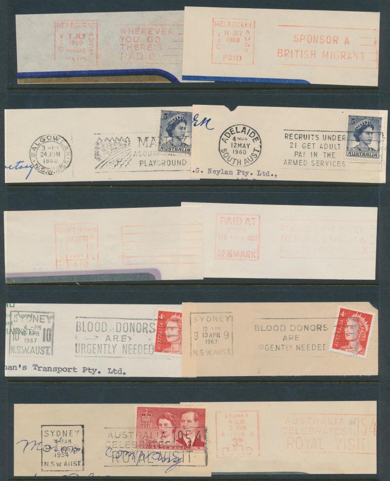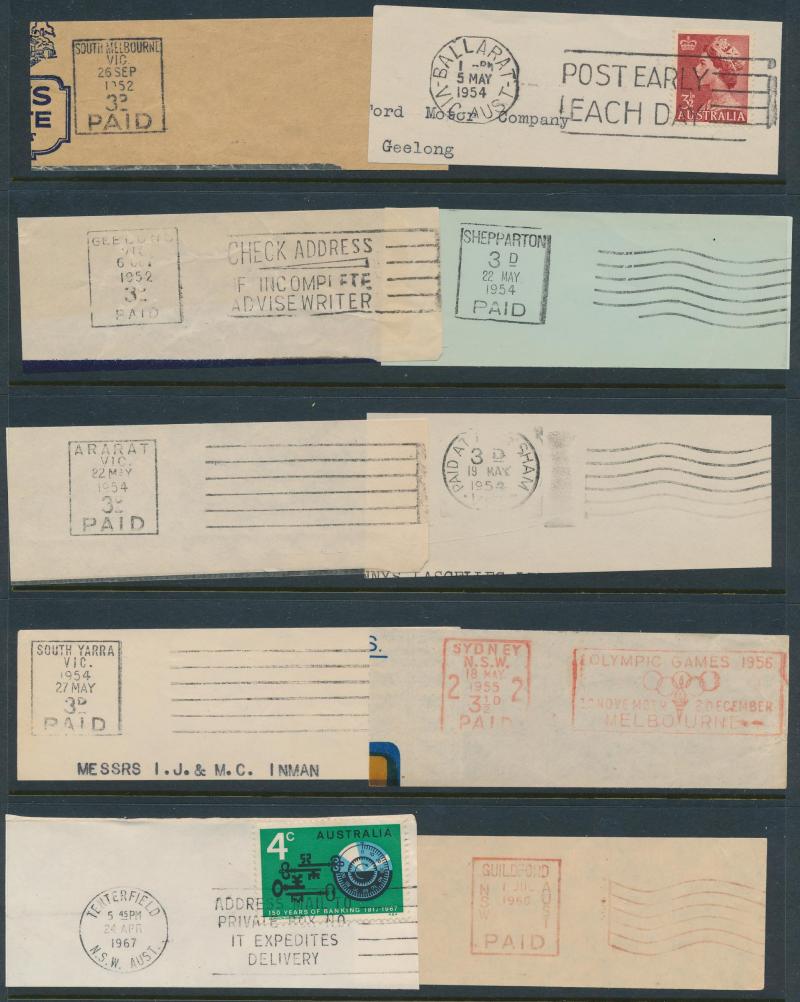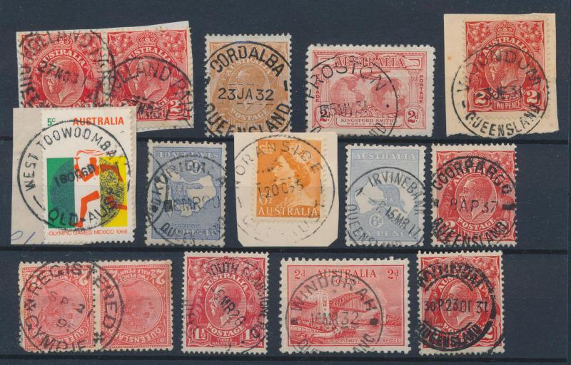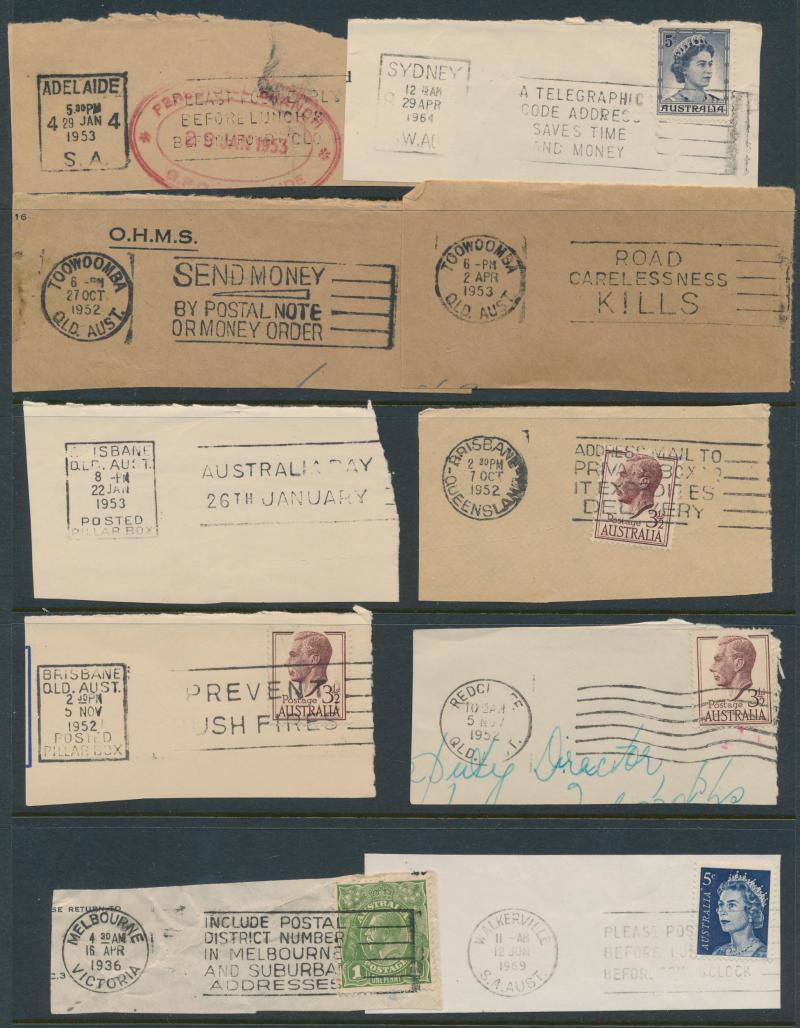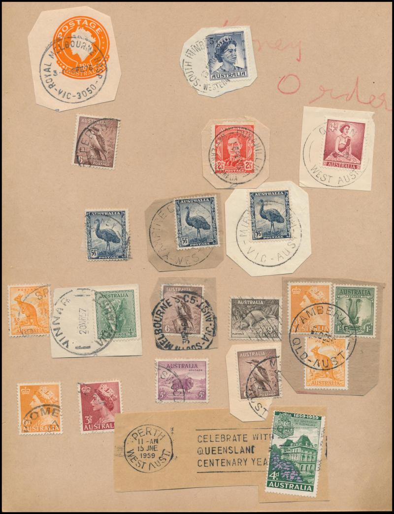 POSTMARKS: Collector's duplicates mostly from the 1970s-1980s & the majority on-pieces cut-square, the best section is Queensland