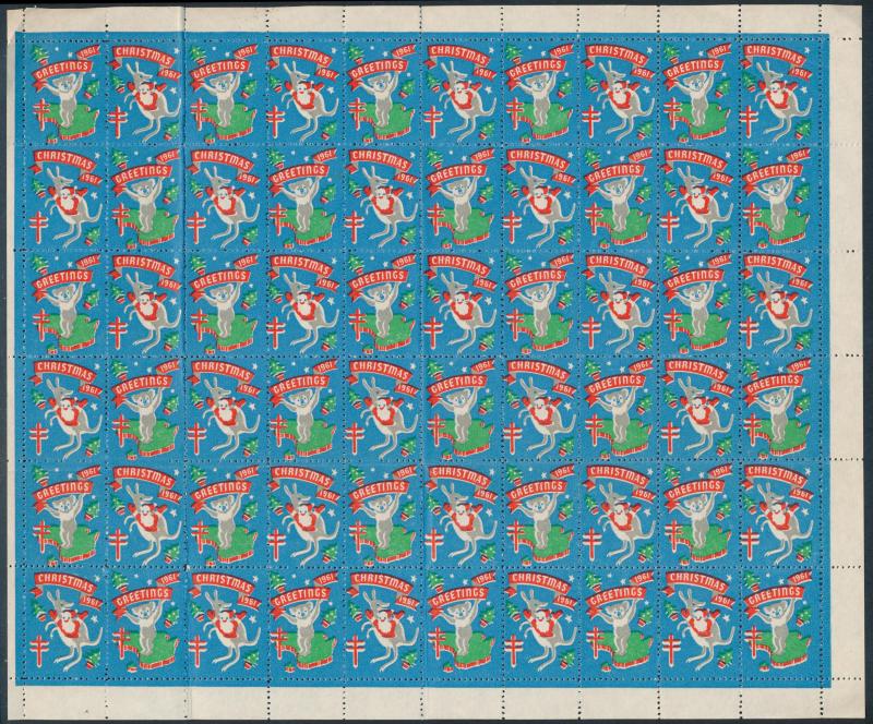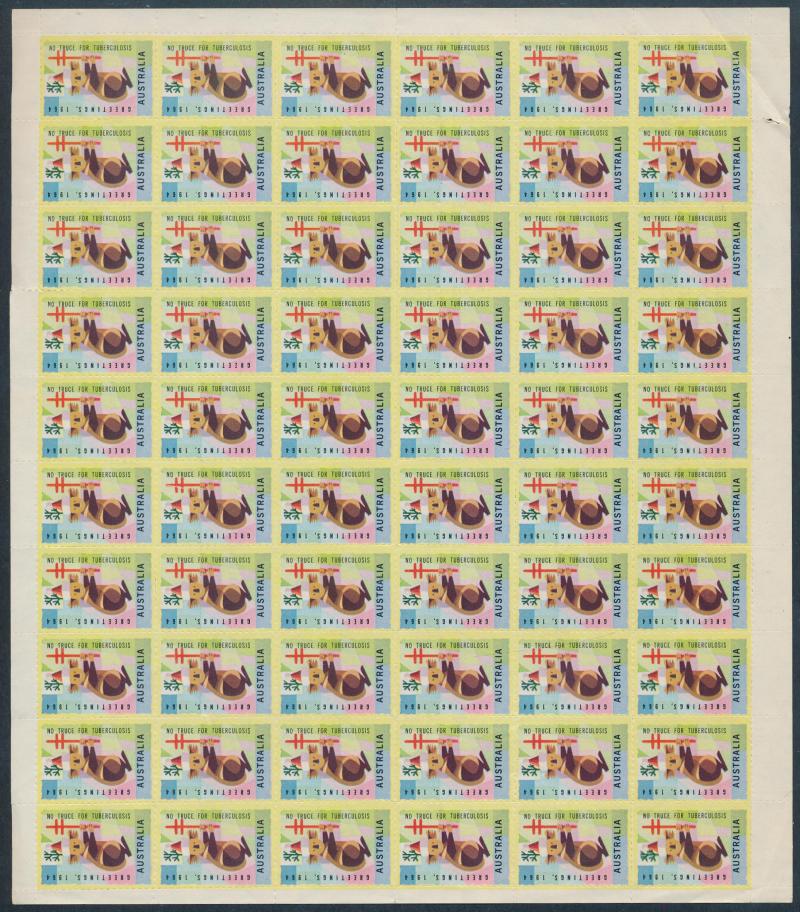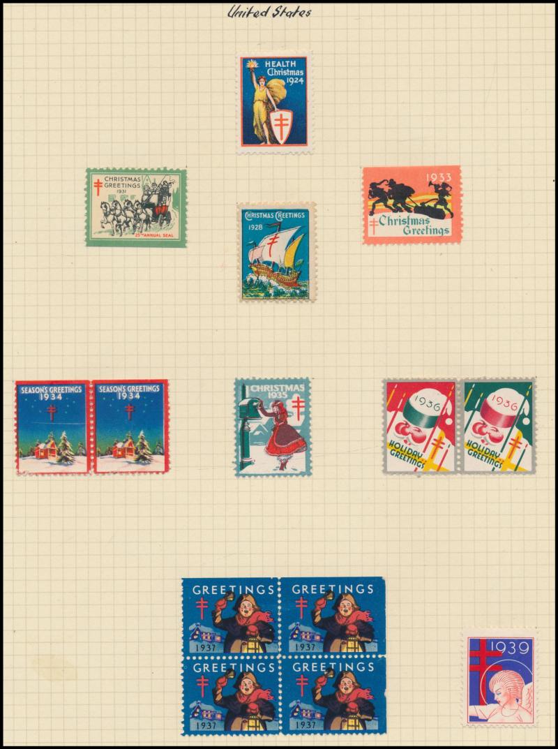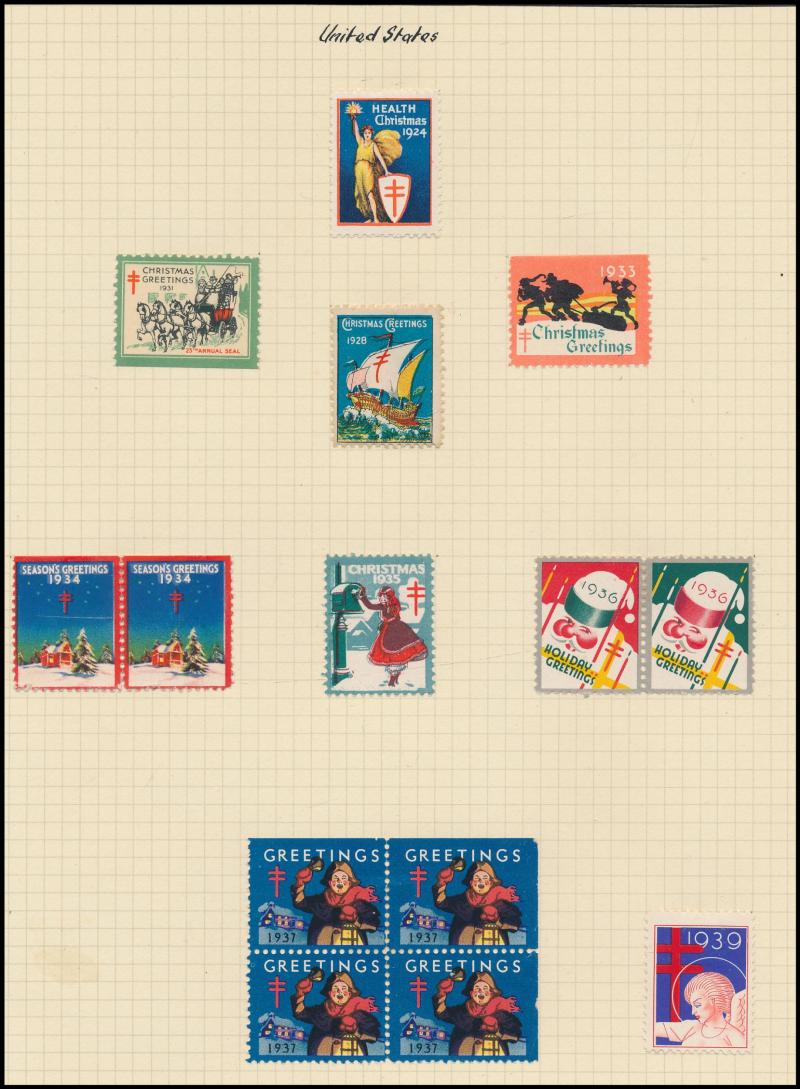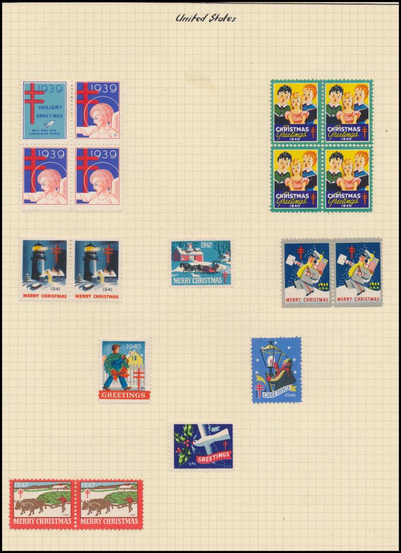few propaganda labels, 1947 Charles Davis Ltd mint block of 8, 1965 Akira Box Hill block of 6, then an extensive array of Anti-TB/Christmas seals including several complete sheets and some foreign material including from America, Scandinavia & France
