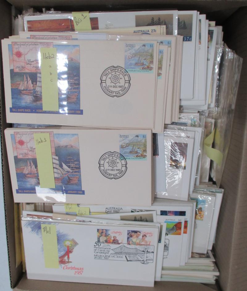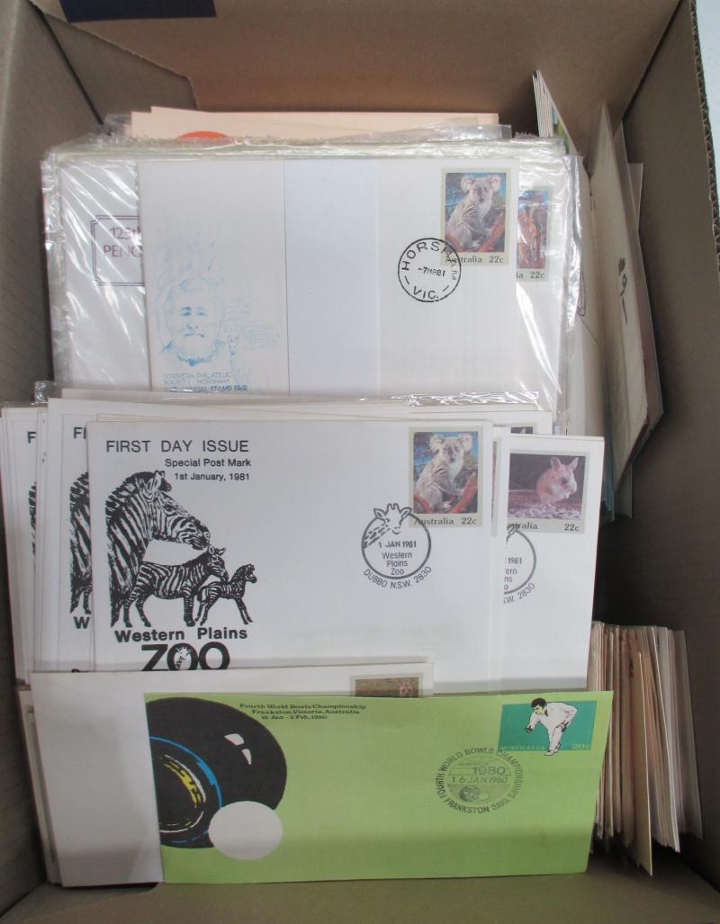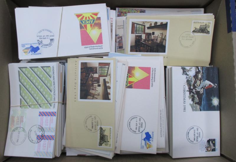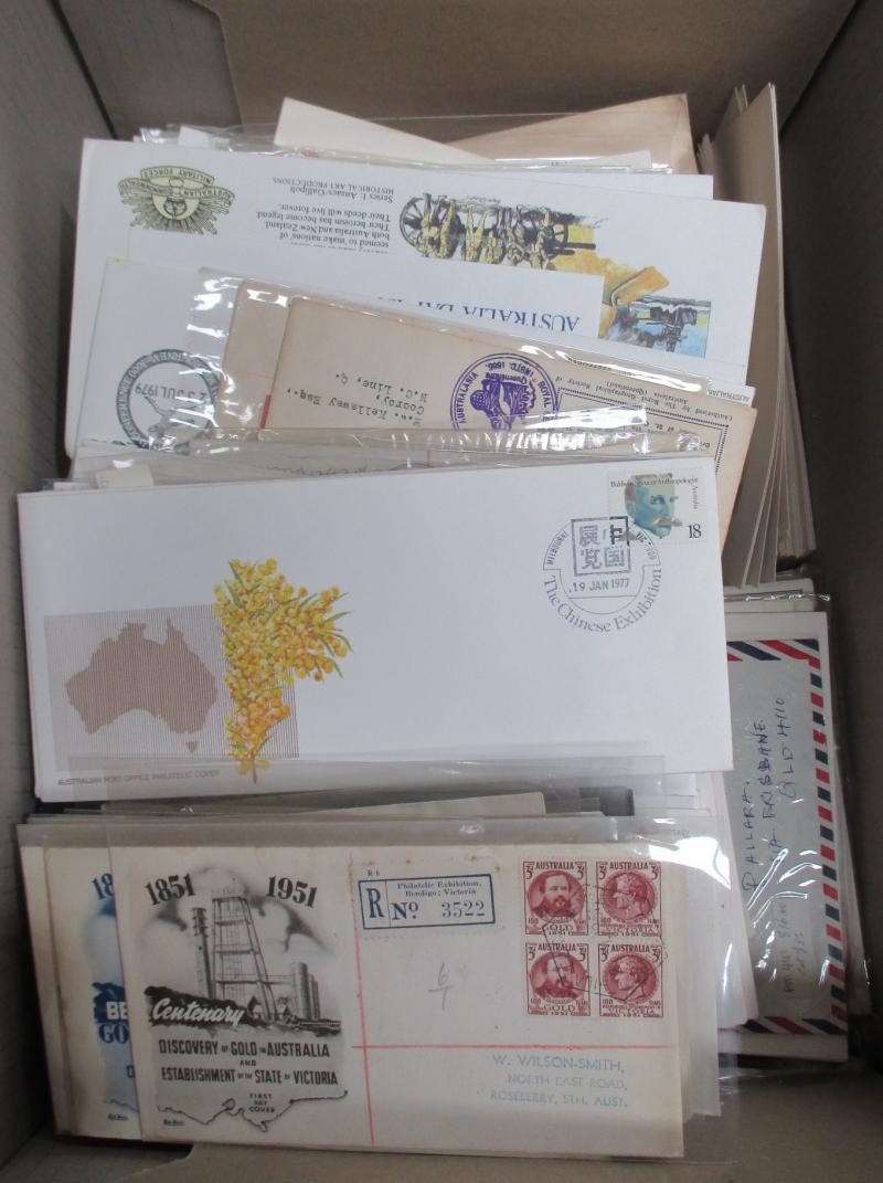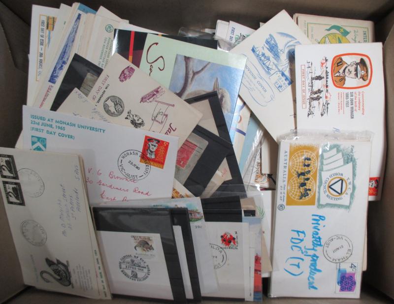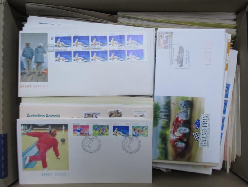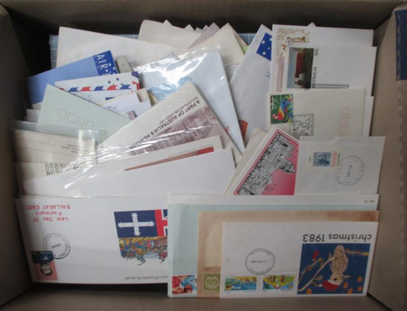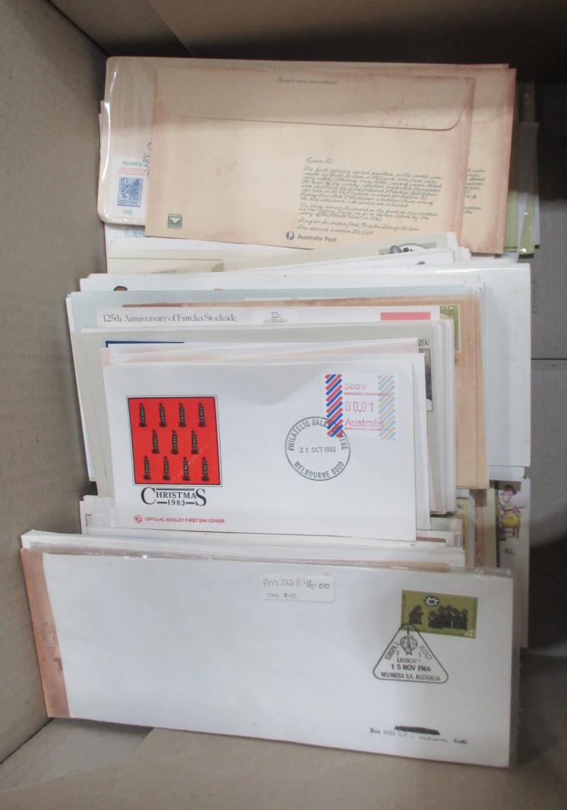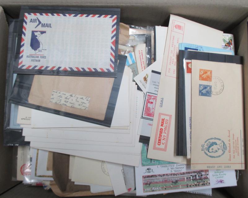 FDI hand cancels on souvenir covers, Australia Post general purpose covers and FDCs, a few Pre-Decimal items also. Weighs 236kg.