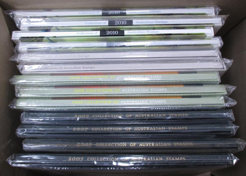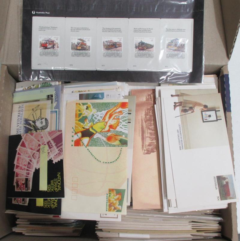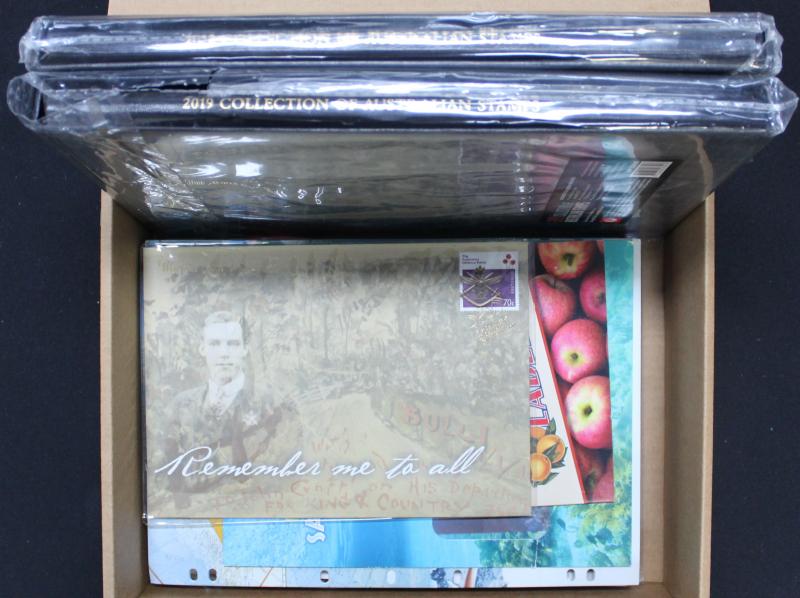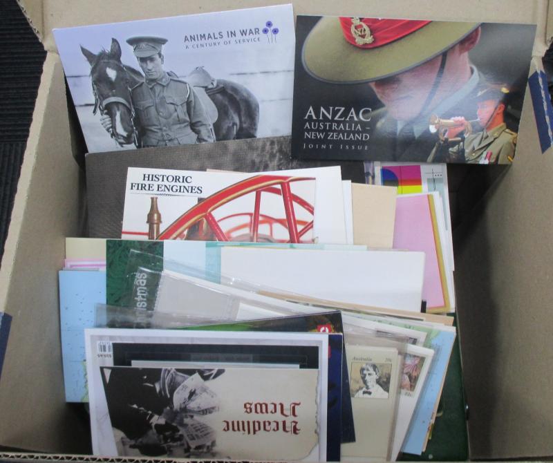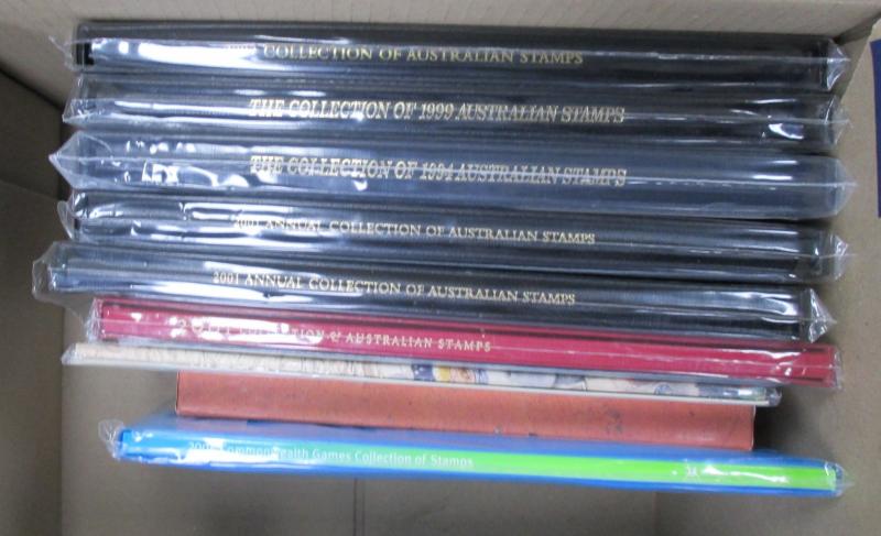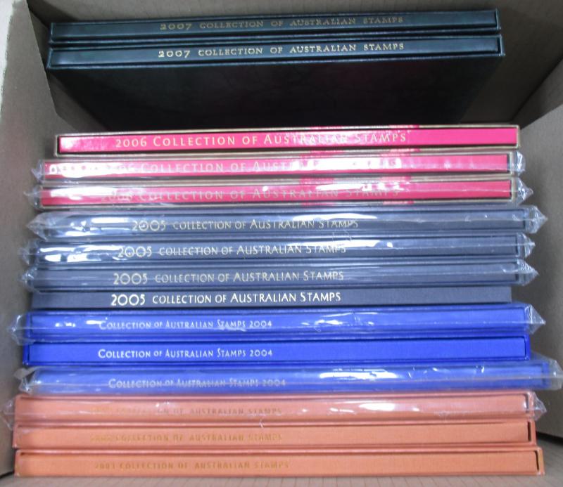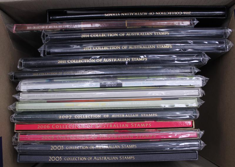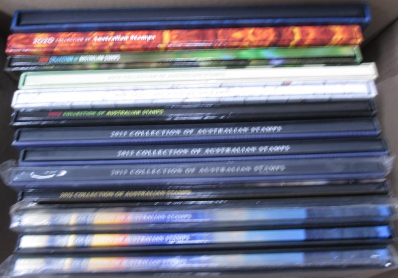 2011, 2013, 2014, 2016; other Australia Post book products, presentation packs & loose stamps with face value over $2700+, plus FDCs and postcards. Weighs 44kg.
