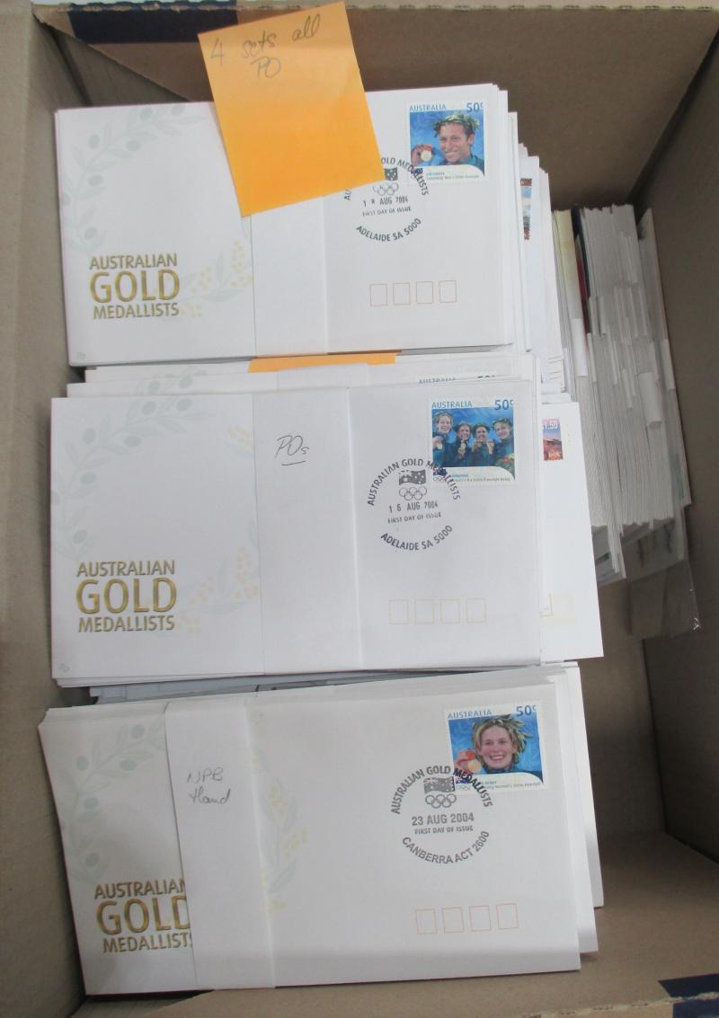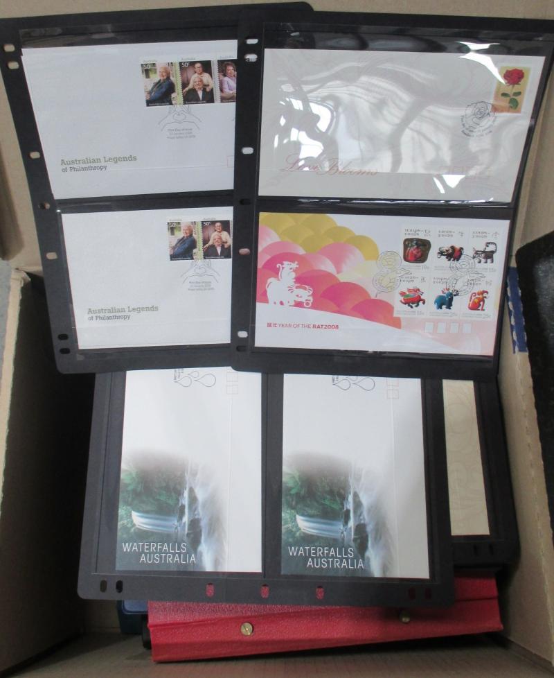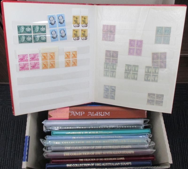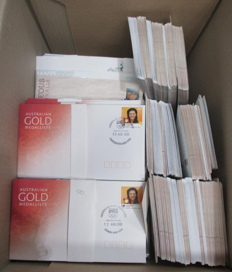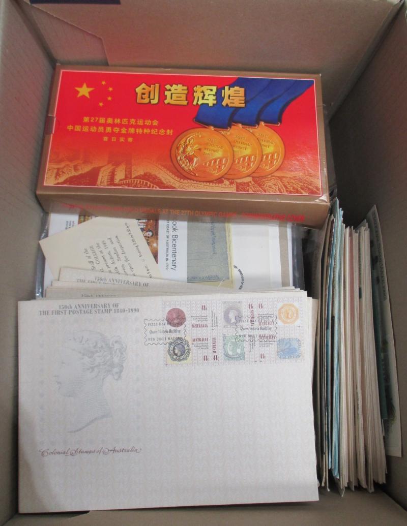 2011, 2013, 2014, 2016; other Australia Post book products, presentation packs & loose stamps with face value over $2700+, plus FDCs and postcards. Weighs 44kg.