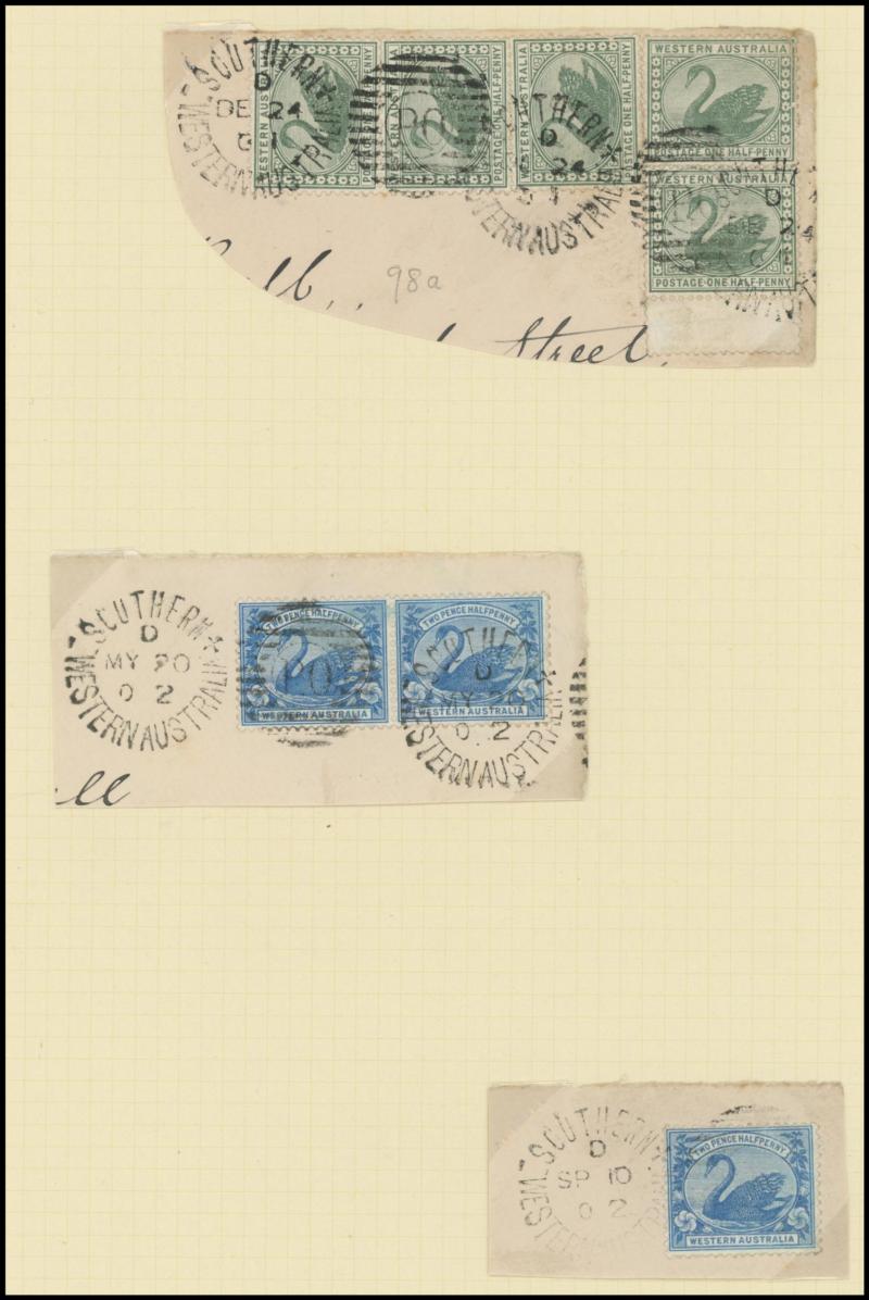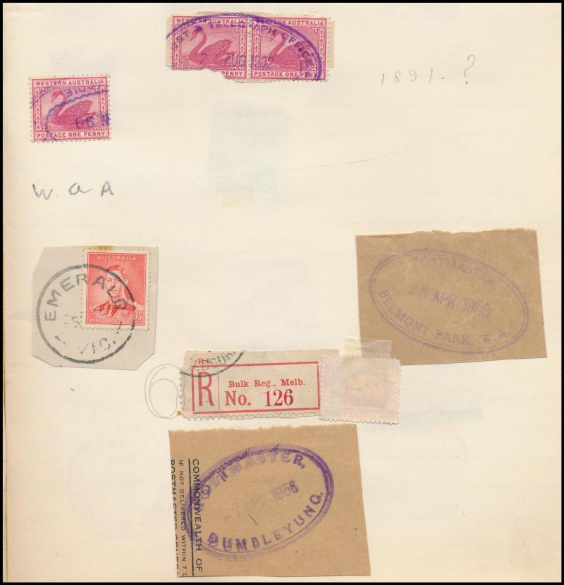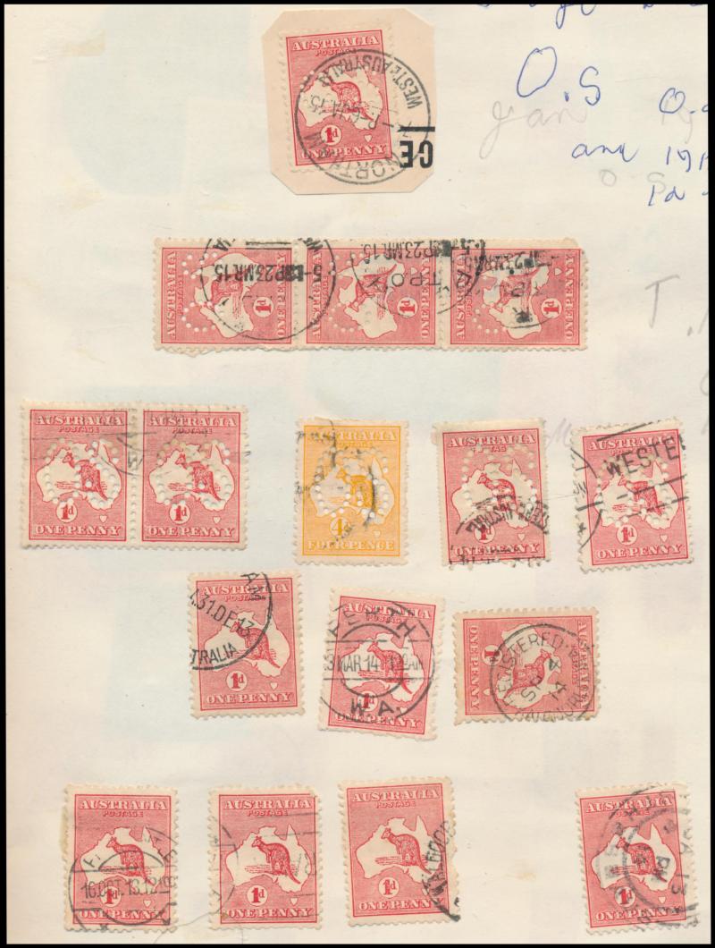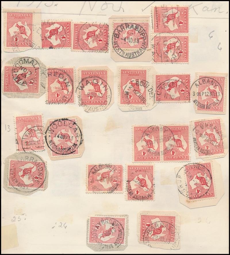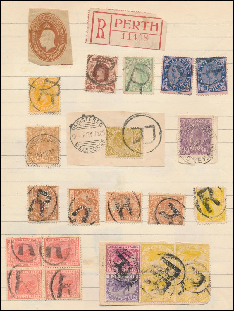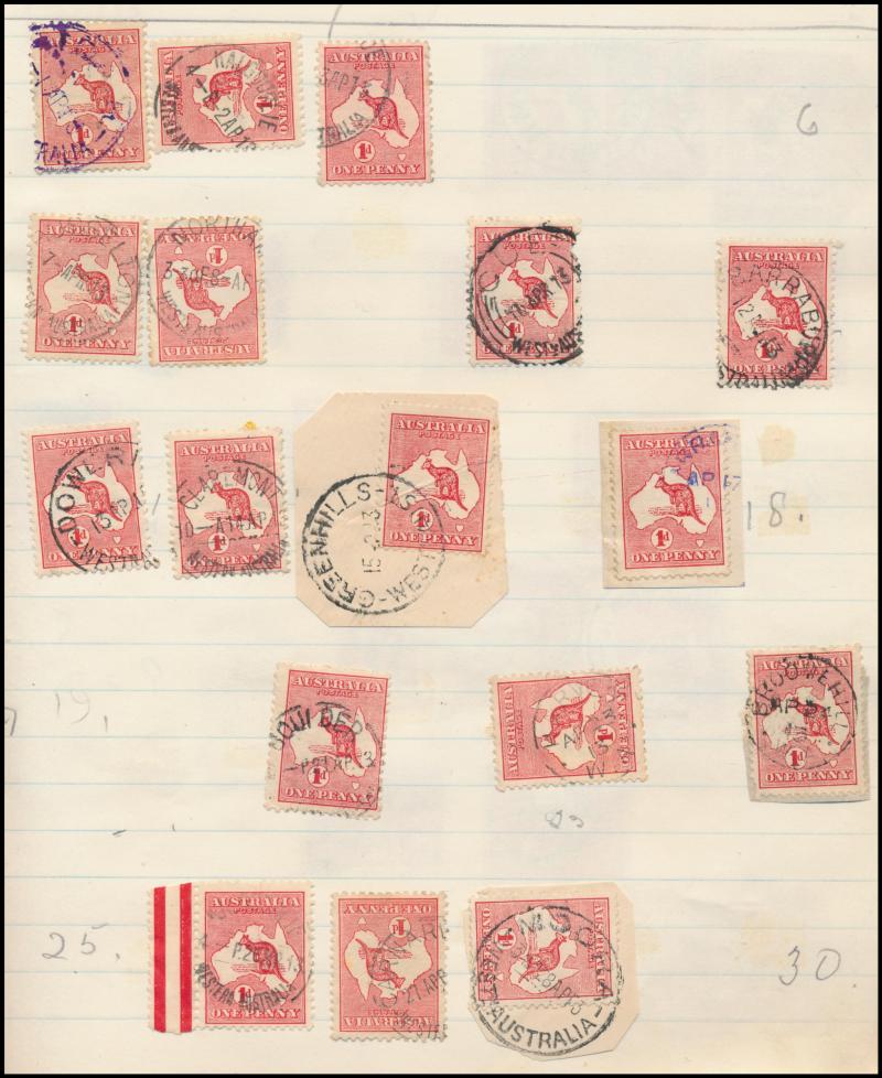 Heads, mounted in exercise books & other homemade albums, strength in Western Australia as to be expected from this source but also plenty of good items from the other States, plus TPO cancels, parcel cancels, oval rubber types, etc, quality of the