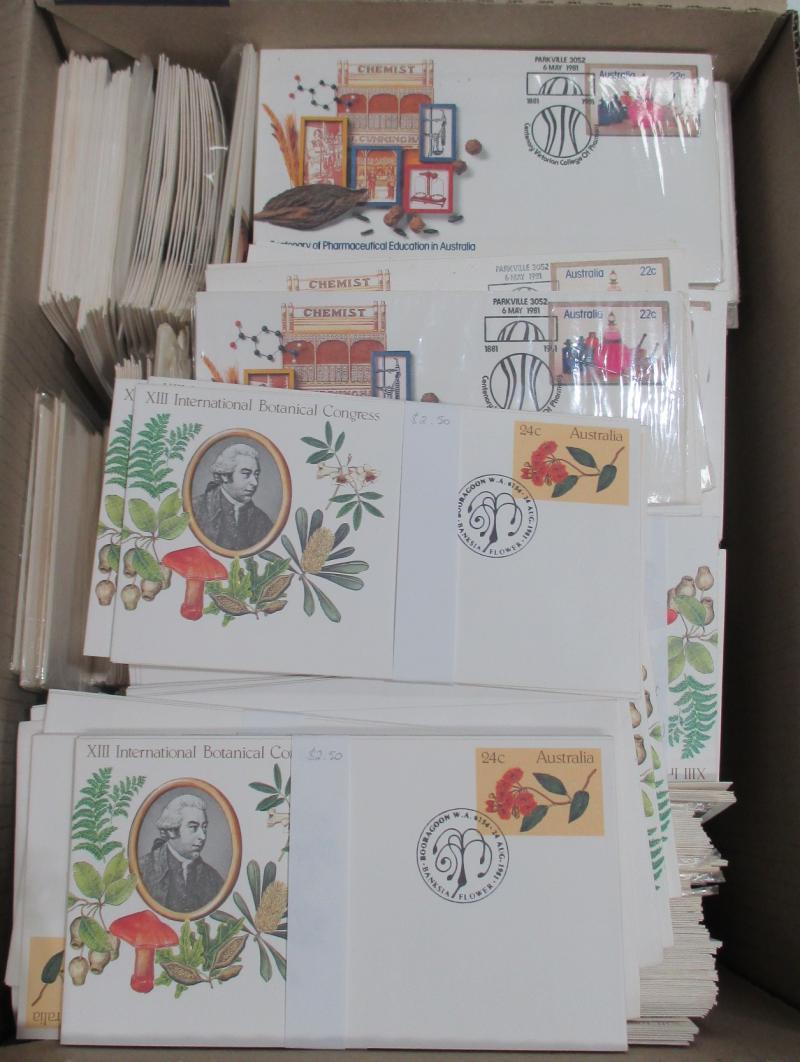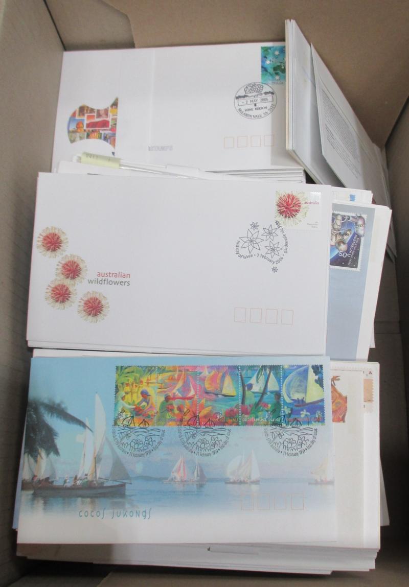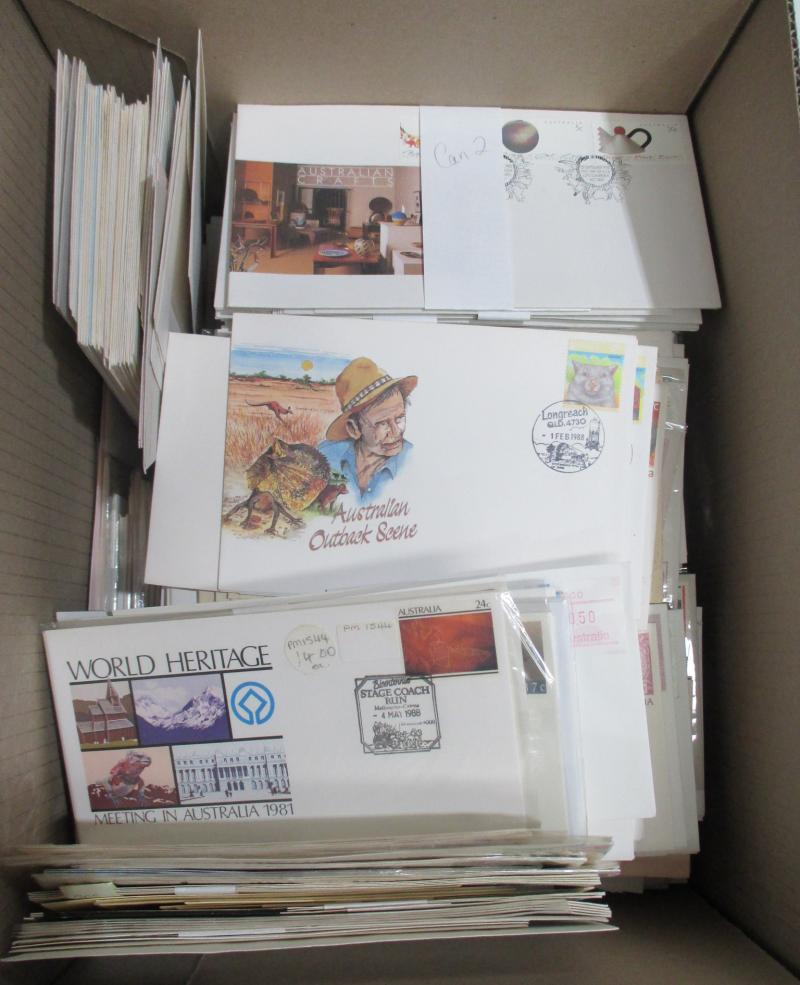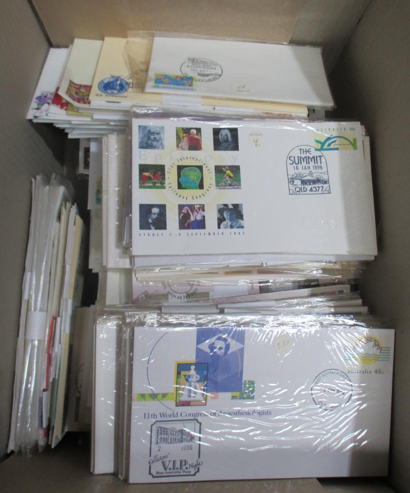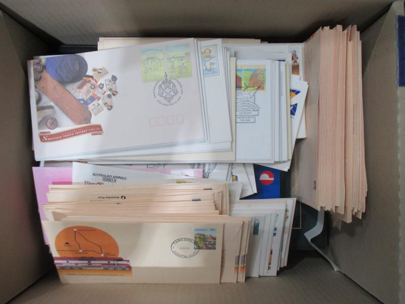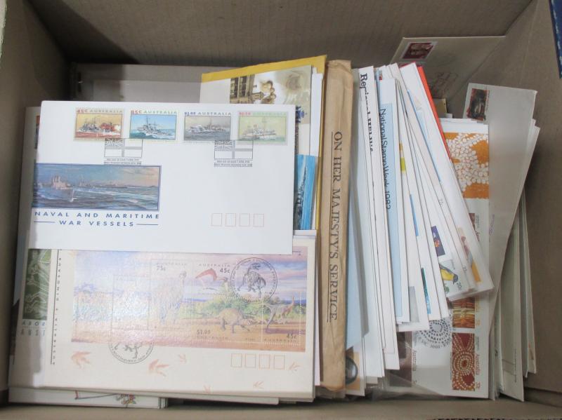 COVERS: Jimbo's Stamp Auctions back-up stock in ten archive boxes full of Australian and Worldwide FDCs, commemorative covers &