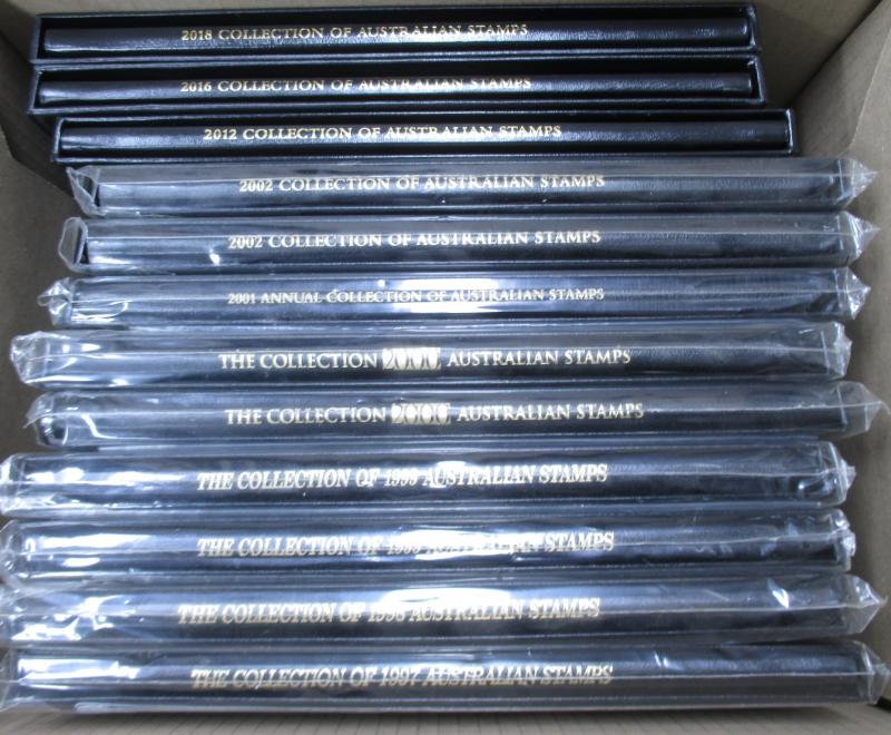each), 2001, 2002 (2), 2012, 2016, 2018; plus special edition album A Selection of the Engraved Stamps of the Commonwealth of Australia; face value $7000+. Weighs 108kg.