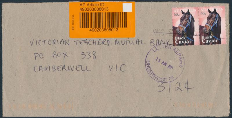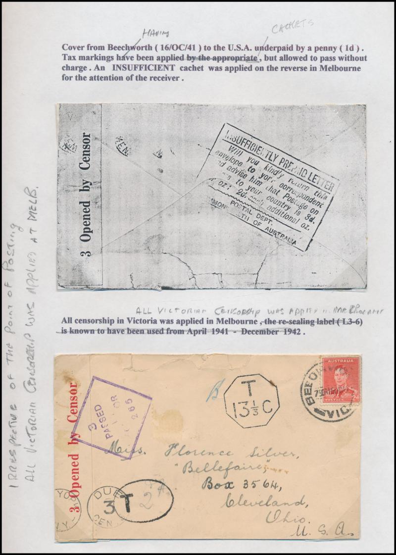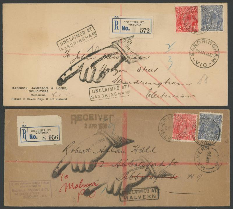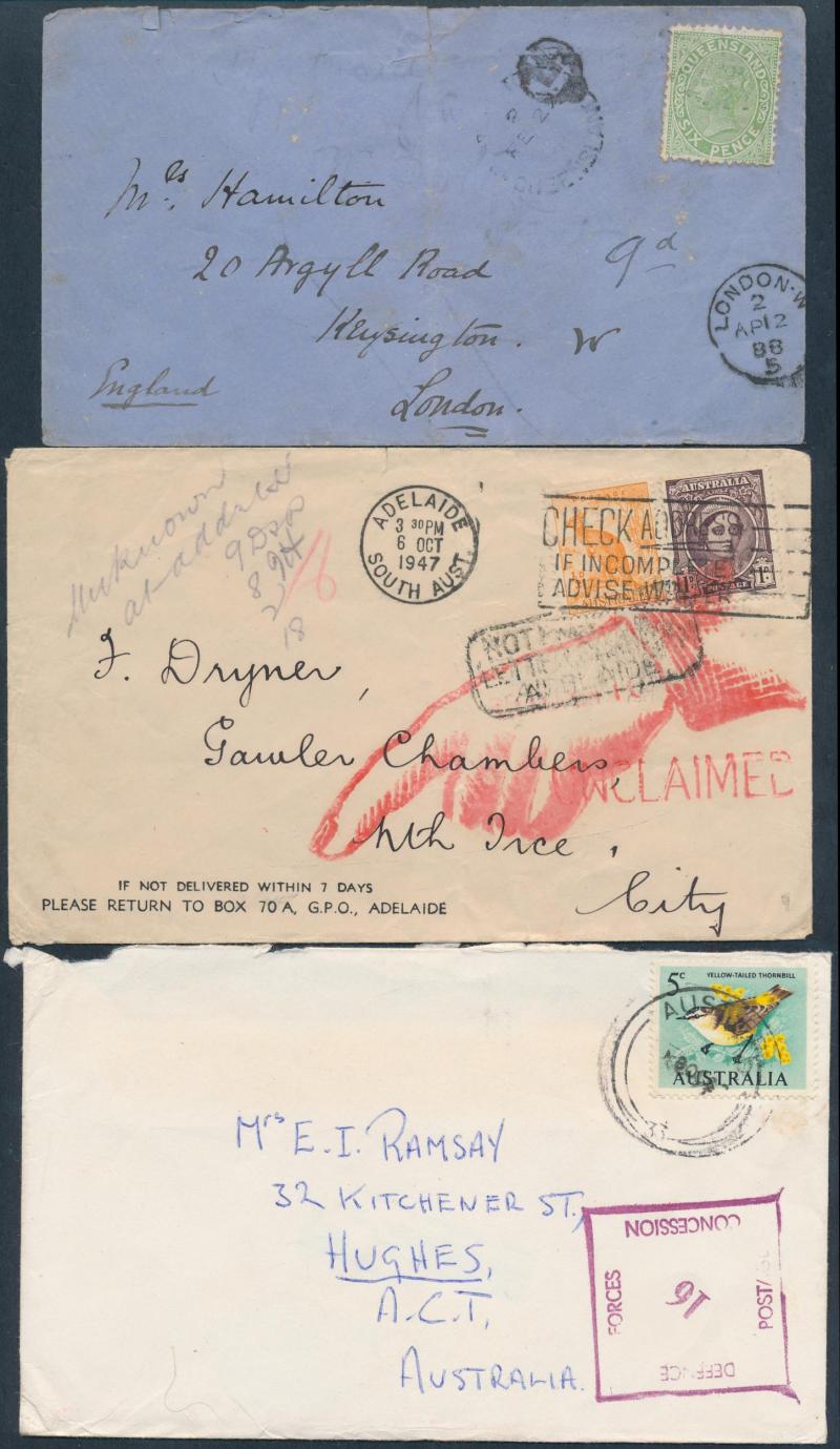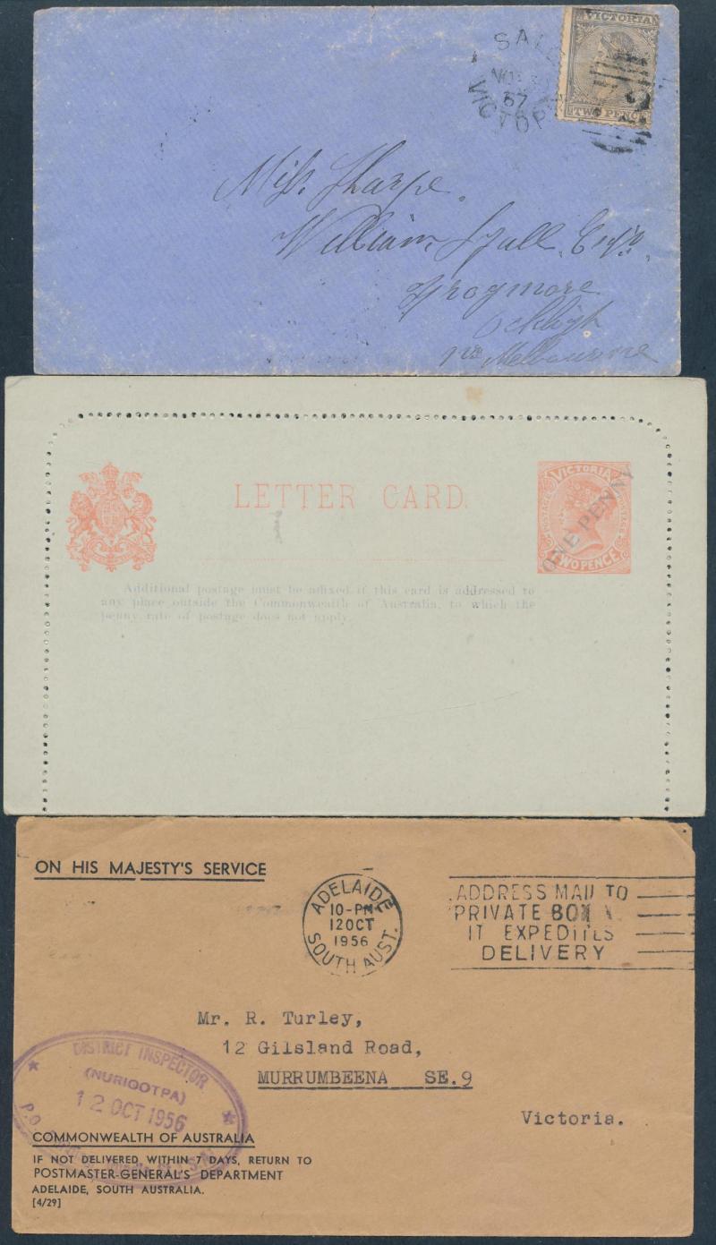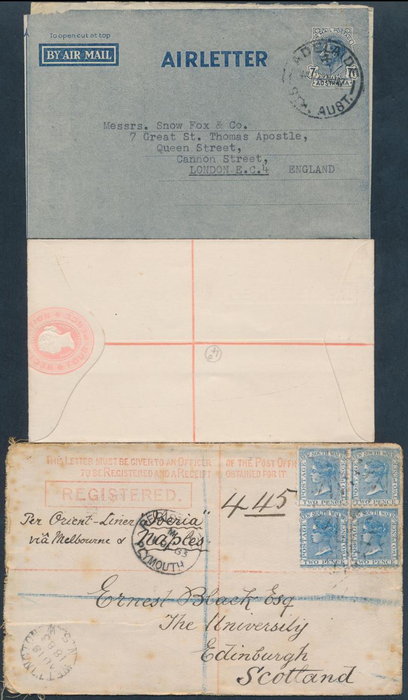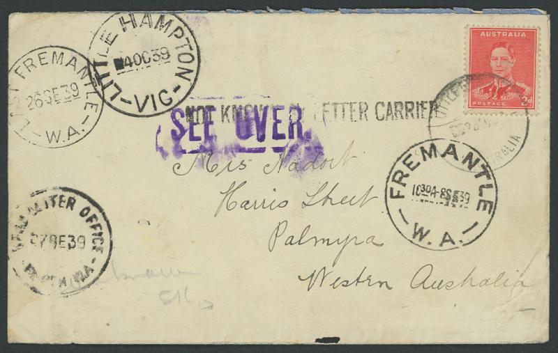 from 'LITTLEHAMPTON/SOUTH AUSTRALIA' to Perth inadvertently returned to Victoria with 'LITTLE HAMPTON/VIC' cds on the face, generally fine to very fine. Scarce material.