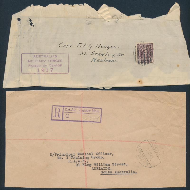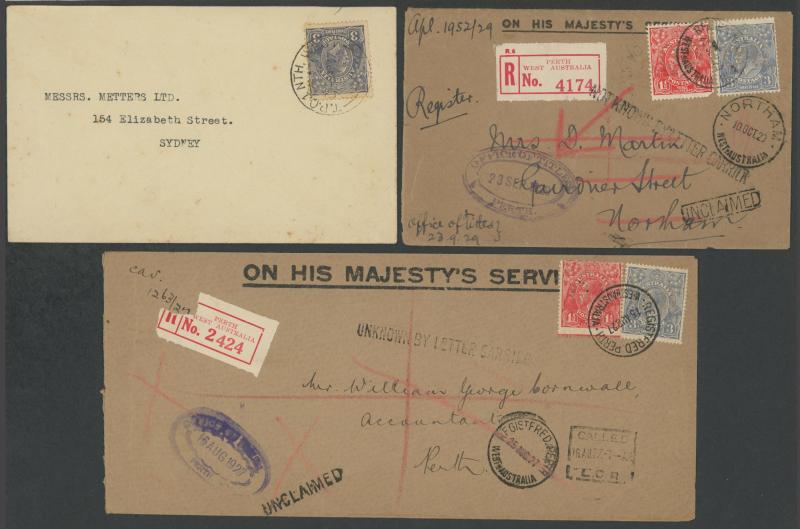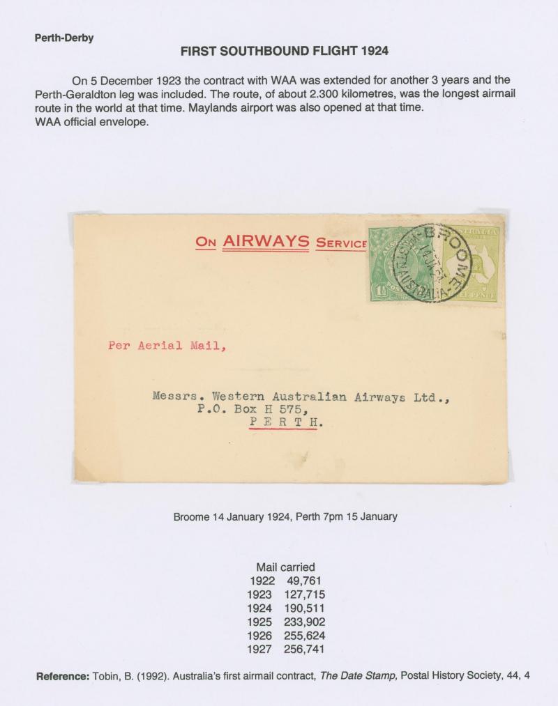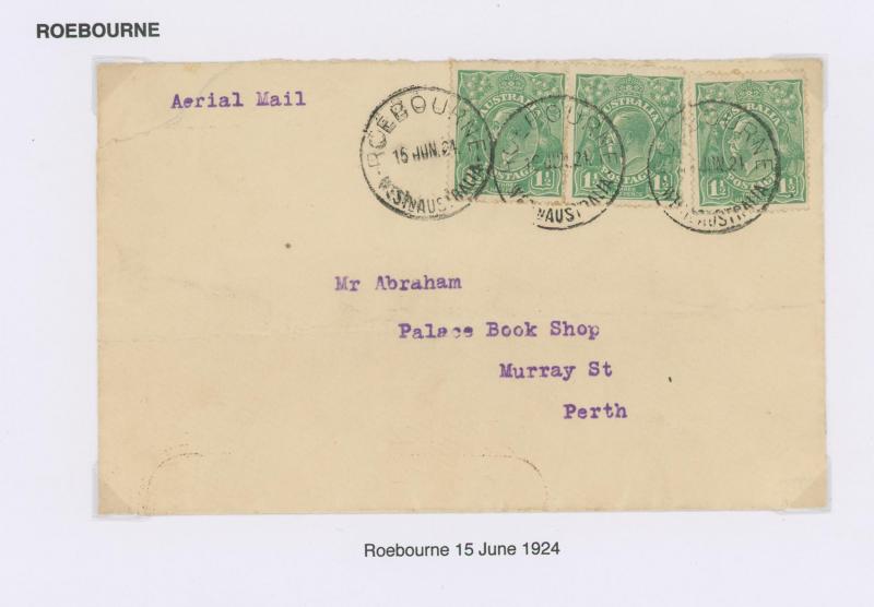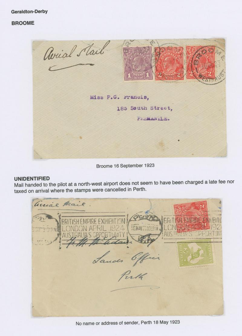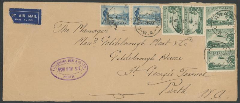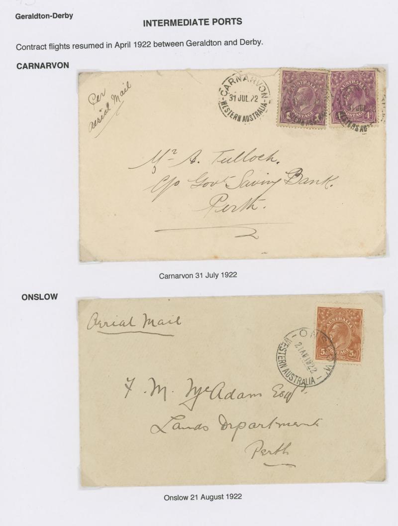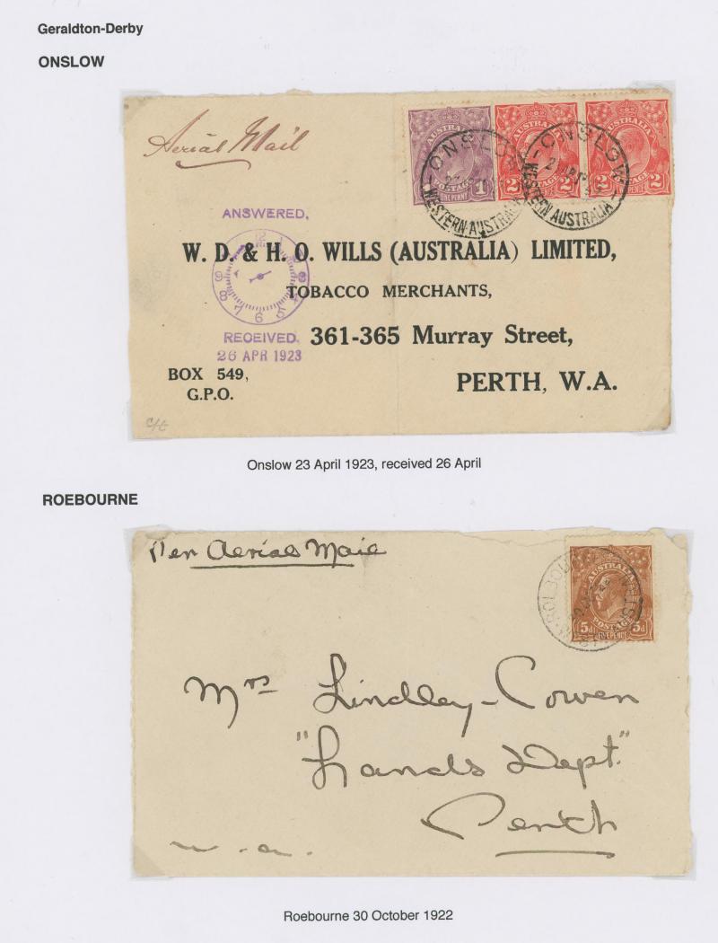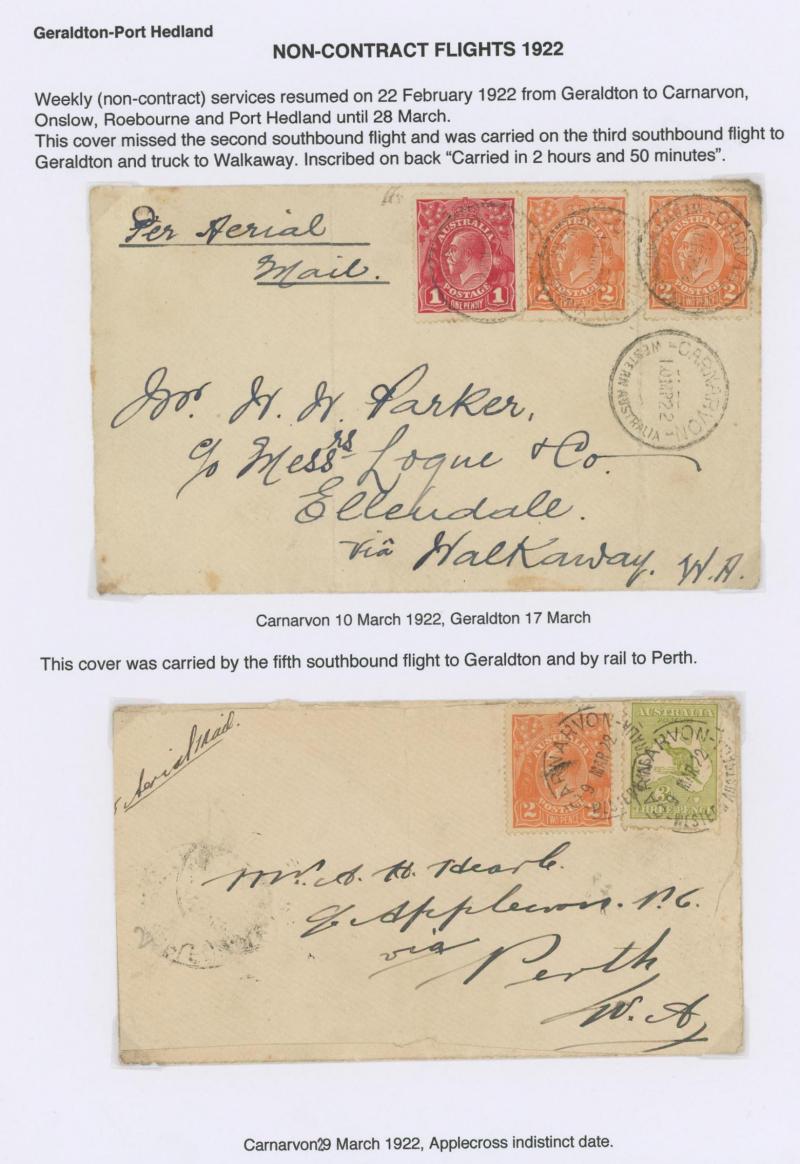 Western Australia airmails on display pages including between Dalgety's offices, 1922 commercial intermediates to Perth from