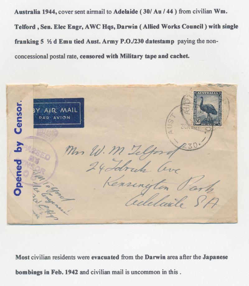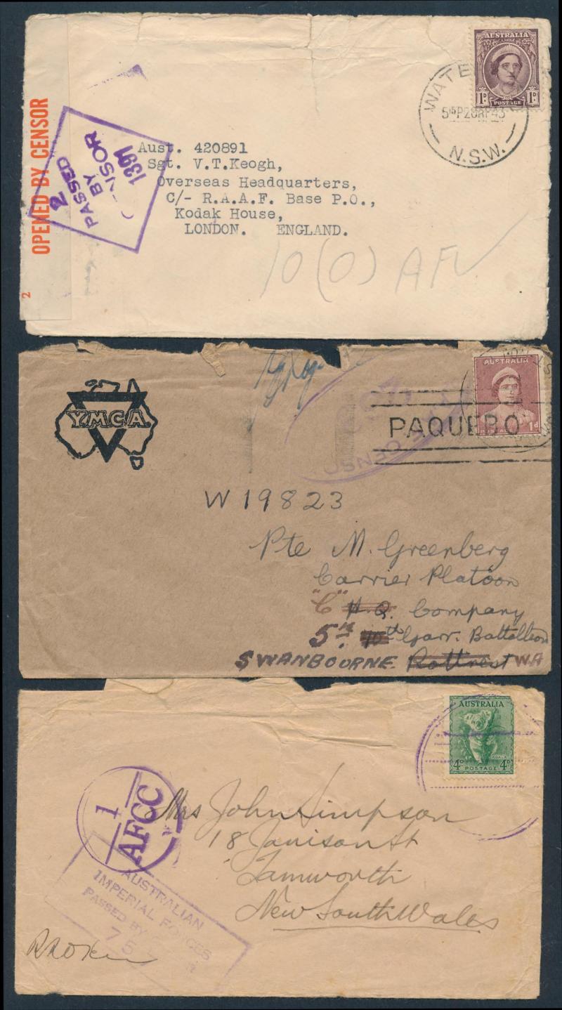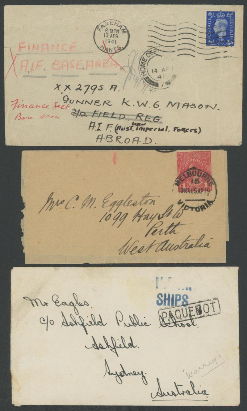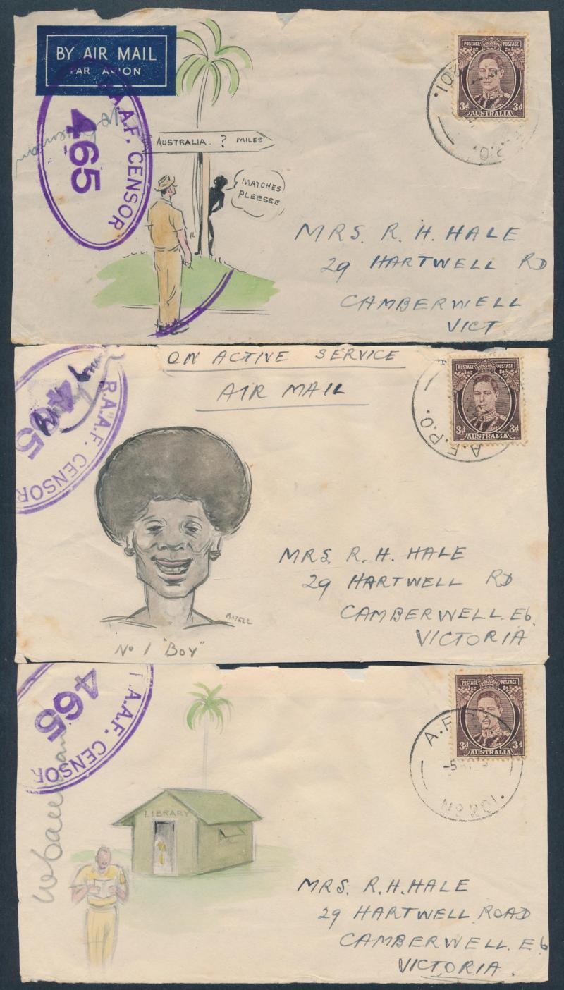 Medium box with strength in World War II mail including illustrated cover-fronts x7, scarce censorship from Darwin Hobart &