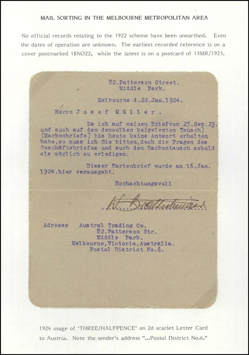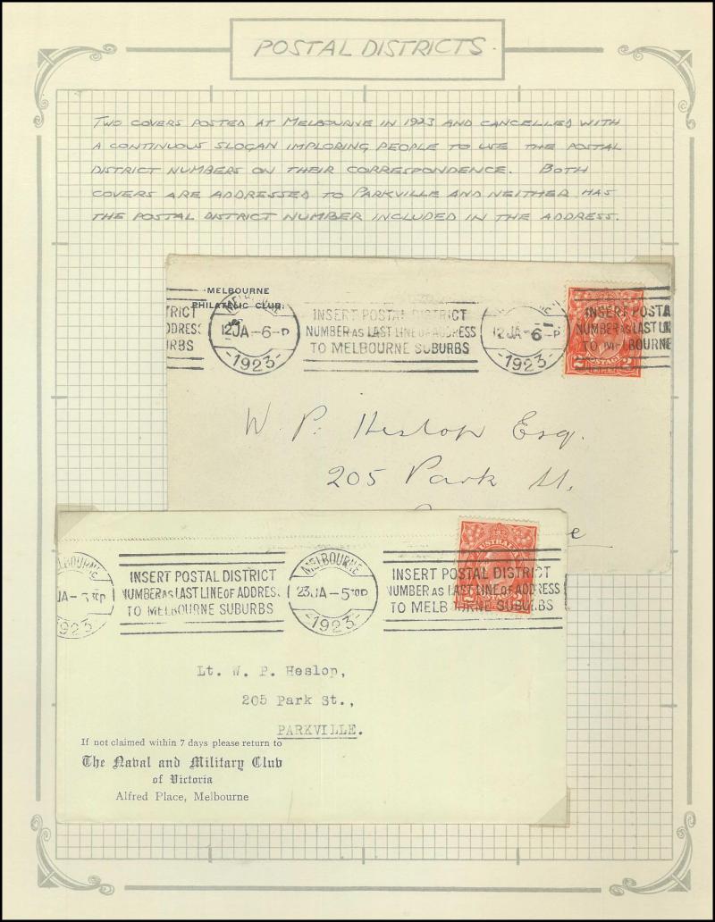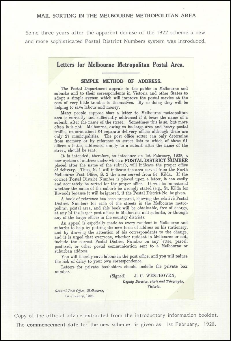 Mail Sorting in Melbourne 14-page display mostly of the little-known & largely ignored 1922 numeric scheme including slogan