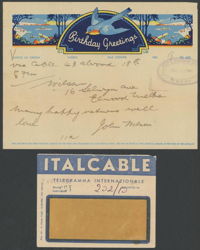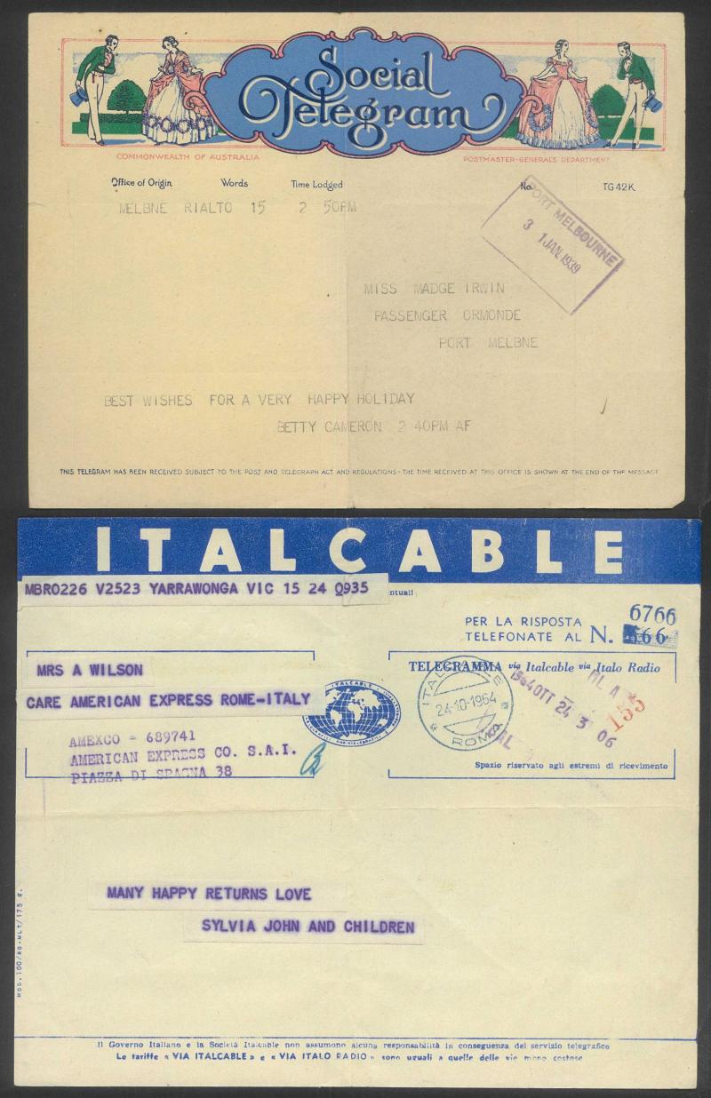 MIL PO' in violet (1967) on a Telegram envelope, finally 1964 'ITALCABLE' form & envelope, condition variable with some repairs but most are fine to very fine.