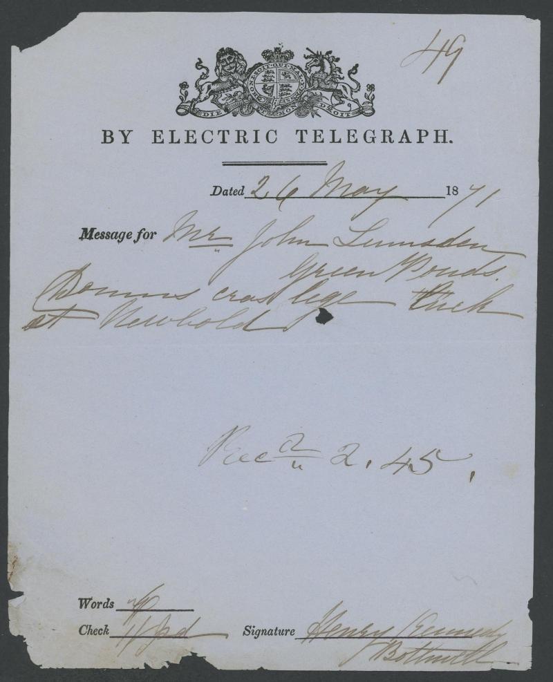 Telegrams handy group including early pink/white 'TELEGRAPHIC [arms] DESPATCH' envelope, 1871 black/blue 'BY ELECTRIC TELEGRAPH'