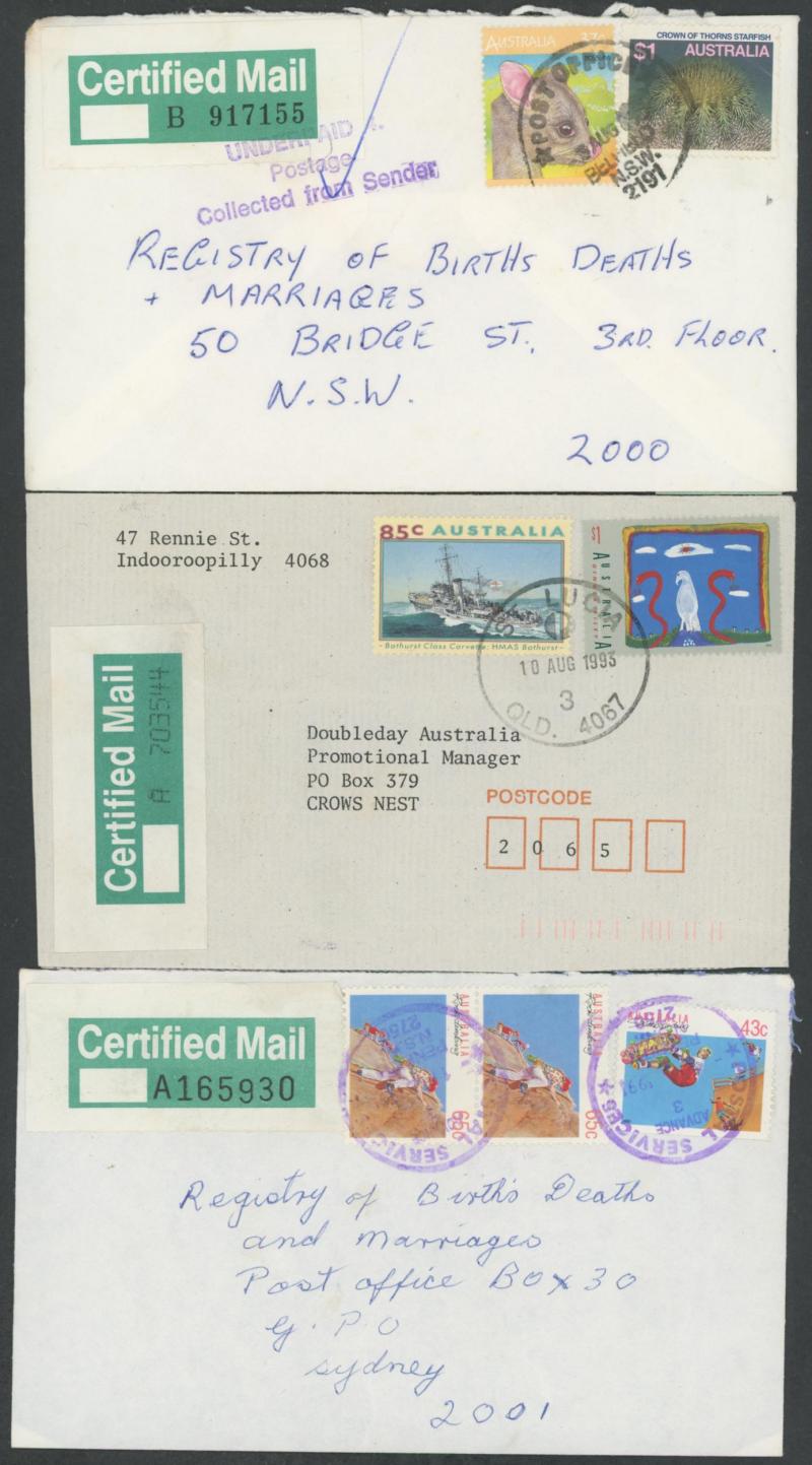 Batch of covers with a few registered and some NSW TPOs including on a few inwards items; 1989-90 array of mostly 41c Framas tied