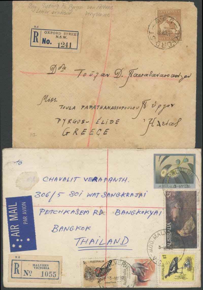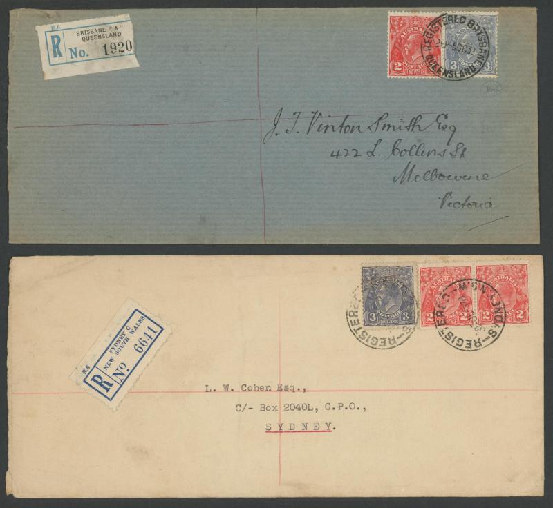 Airmail on registered airmail to Brisbane, plus a few others in poor condition .