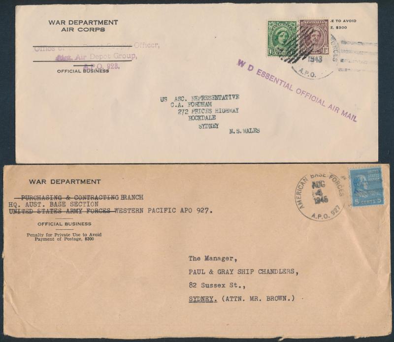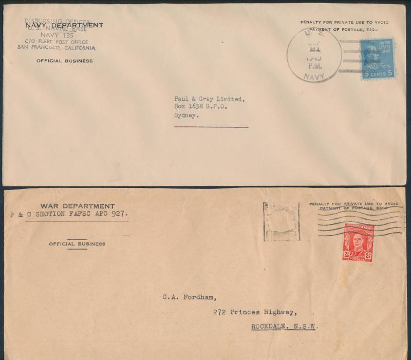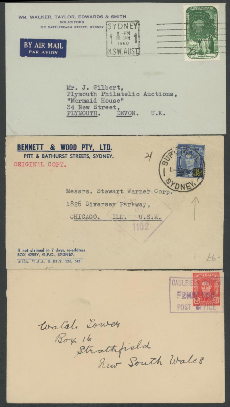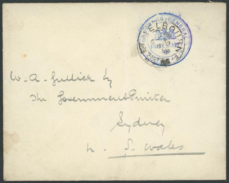envelope to Sydney with 'GOVERNOR-GENERAL/FRANK STAMP/AUSTRALIA' Frank stamp in blue, etc, most are fine to very fine.