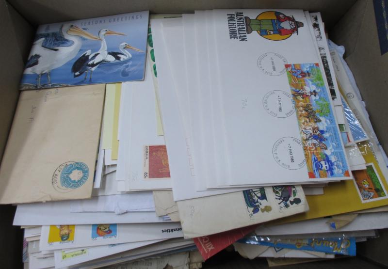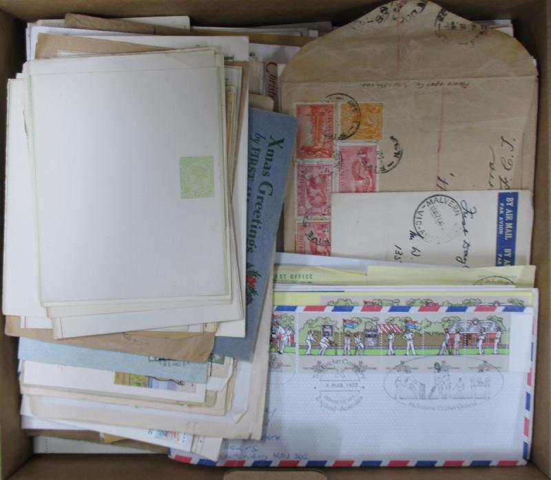 including illustrated envelopes, some Colonies especially Victoria including postal stationery unused & used, also postcards, flight covers, FDCs & commemorative cancels, other postmark interest including a few numeral 'ties', condition variable but
