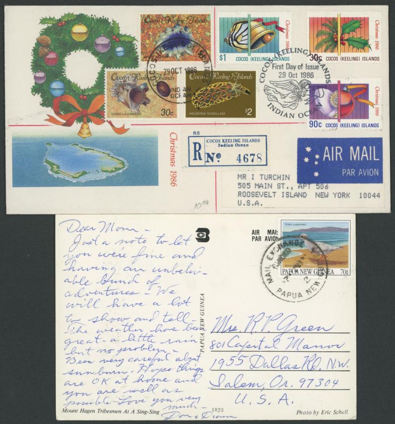 1971 Christmas block of 4 (used 3JA72 & possibly commercial), 1973 Famous Australians block of 4, some better 1990s-2010s commemoratives, International Post covers & postcards, etc, also some Territories & Pacific Islands FDCs etc, generally fine to