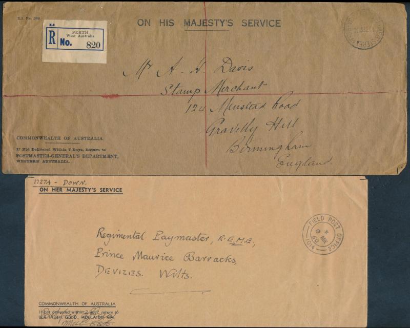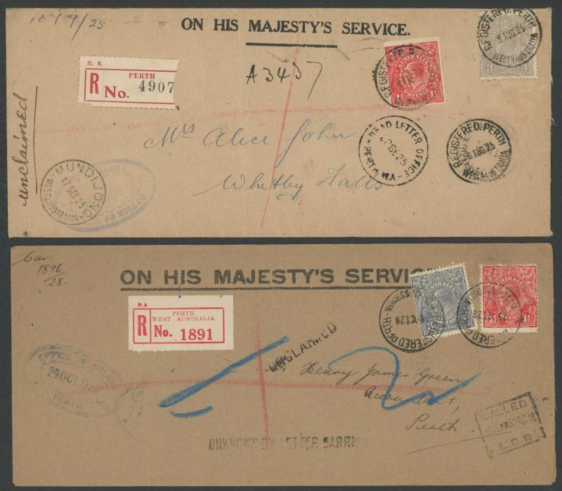 & registration fee with plenty of postmark interest noted Punctured 'OS' Die I (a very 'grey' shade), Die Ia (Perf 14 and Perf 13½x12½) & Die II on Perth Titles Office envelopes, etc, condition a little mixed but many are fine to very fine.