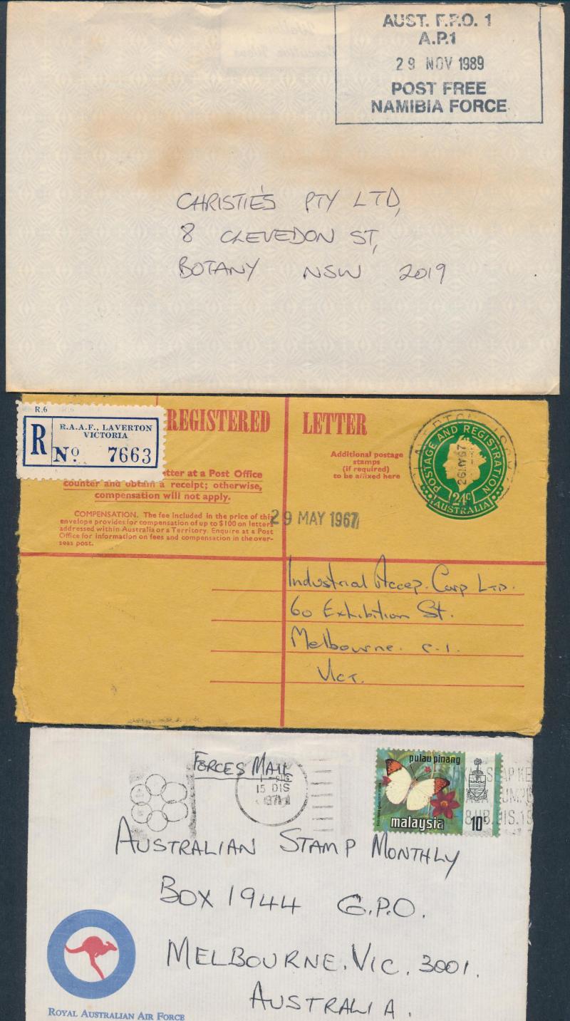 Korea, Malaya, Vietnam and later, naval mail including from Australian stations, lots of Official mail and registered items, postal stationery, censorship, a few US Forces items, etc, condition a little variable but mostly fine to very fine. Weighs