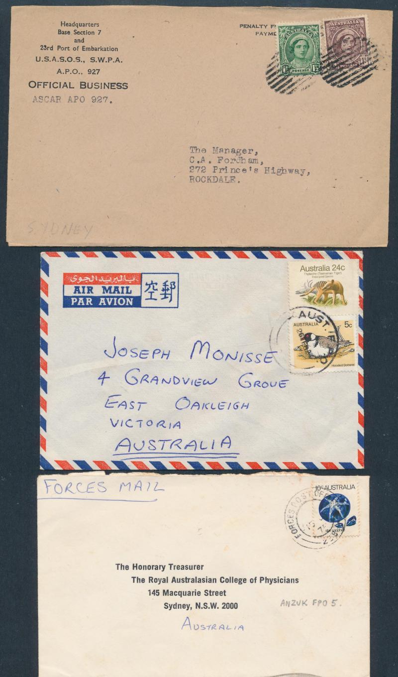Military Mail accumulation WWII and later including Overseas Forces mostly Middle East & Papua New Guinea, also from BCOF Japan,