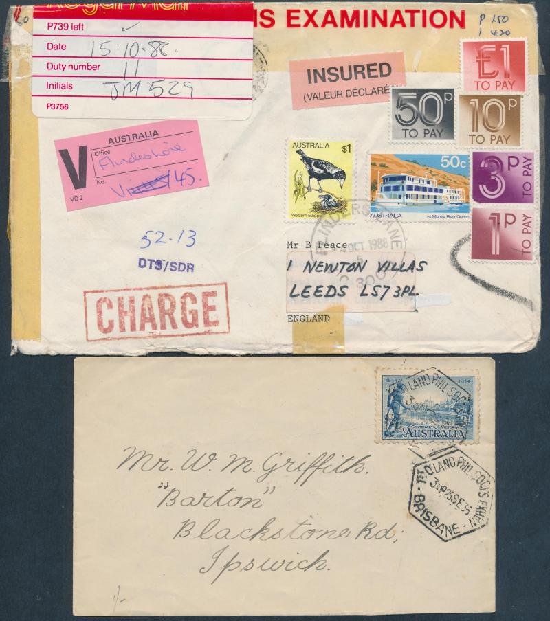 instructional handstamps and official advices, also a study of the various resealing tapes used. Ideal 'frugal philately' subject. Ex Brian Fuller.