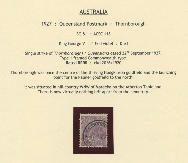 (folded) cover from 'NORMANTON' also with 2-line 'REGISTERED/...' handstamp, filled spikeholes as usual. The second item was sold at our auction of 1.12.2019 for $227 (Sale 239 Lot 1671).