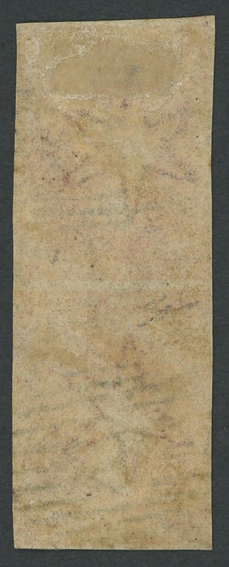 1855 QV Perkins Bacon London Printings 2d rose-carmine SG 2 vertical pair, margins close to good, both units noted as having a