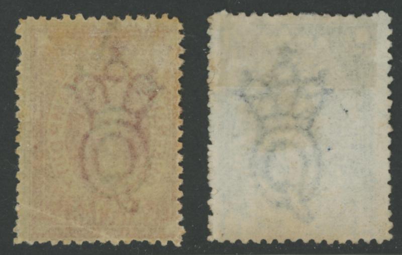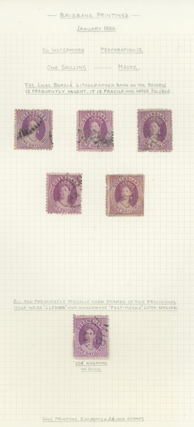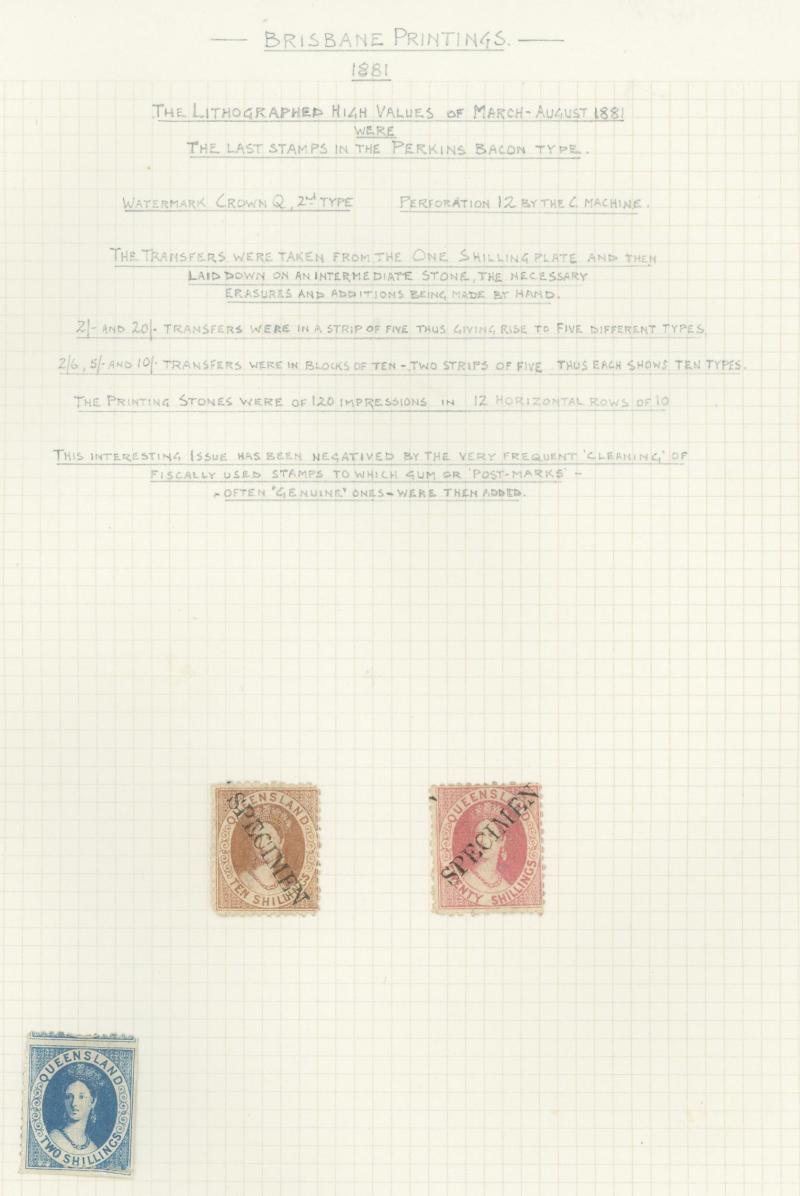 'SPECIMEN' Handstamp, large-part gum, and 2/- with seriffed 'SPECIMEN' Overprint Diagonally, no gum.