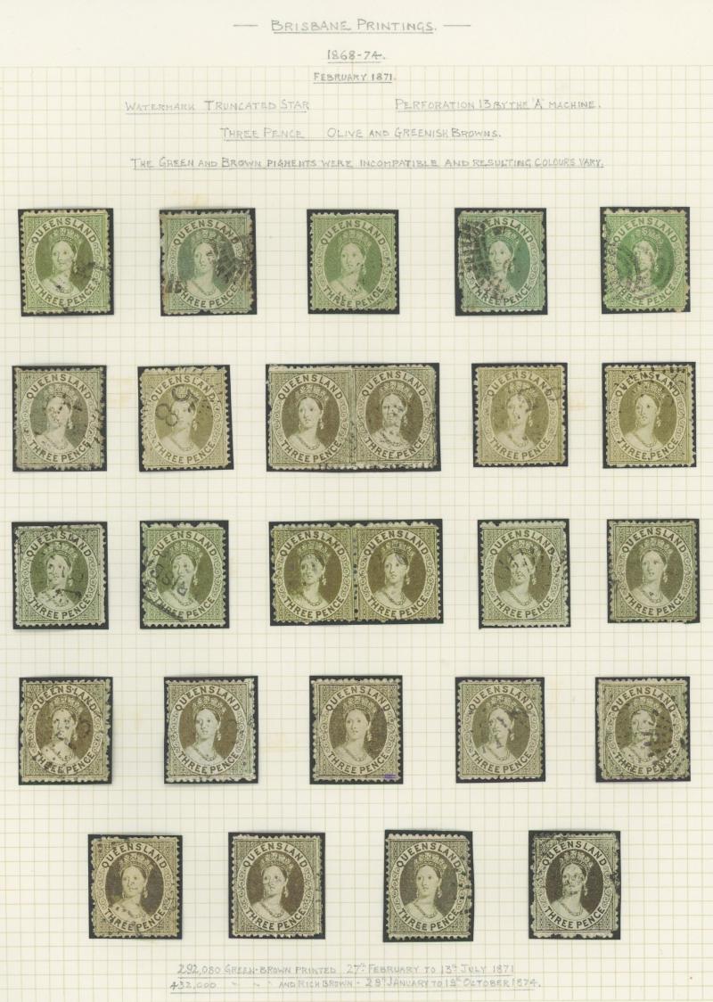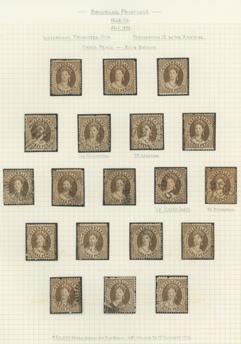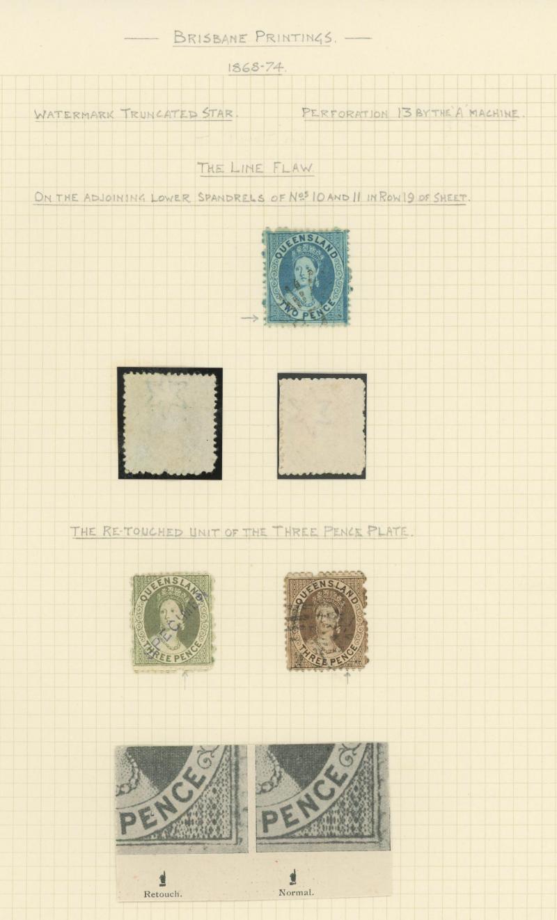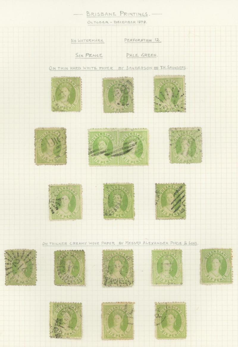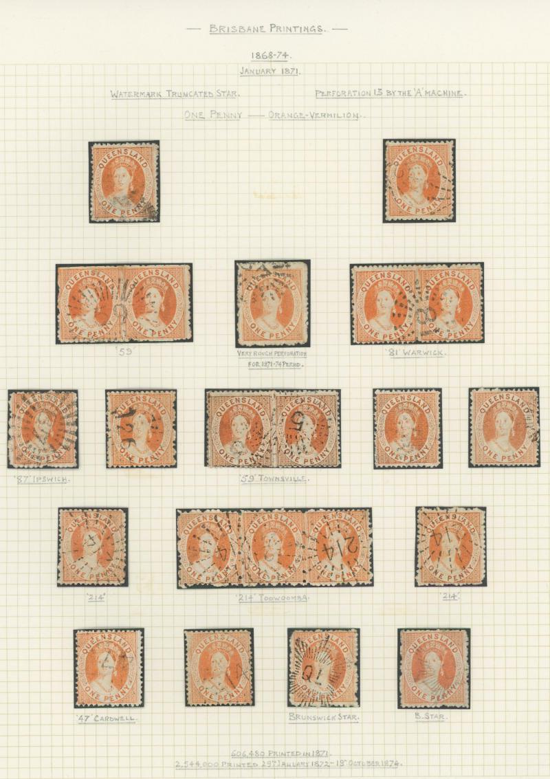 Q16d (SG 234a/235a) page of examples showing the progression of the flaw from the Earliest State x2 (rare) to the Latest State showing the Full Extent of the Crack, various cancels many clear or largely clear of the crack, Cat $2625+ (£1400+).