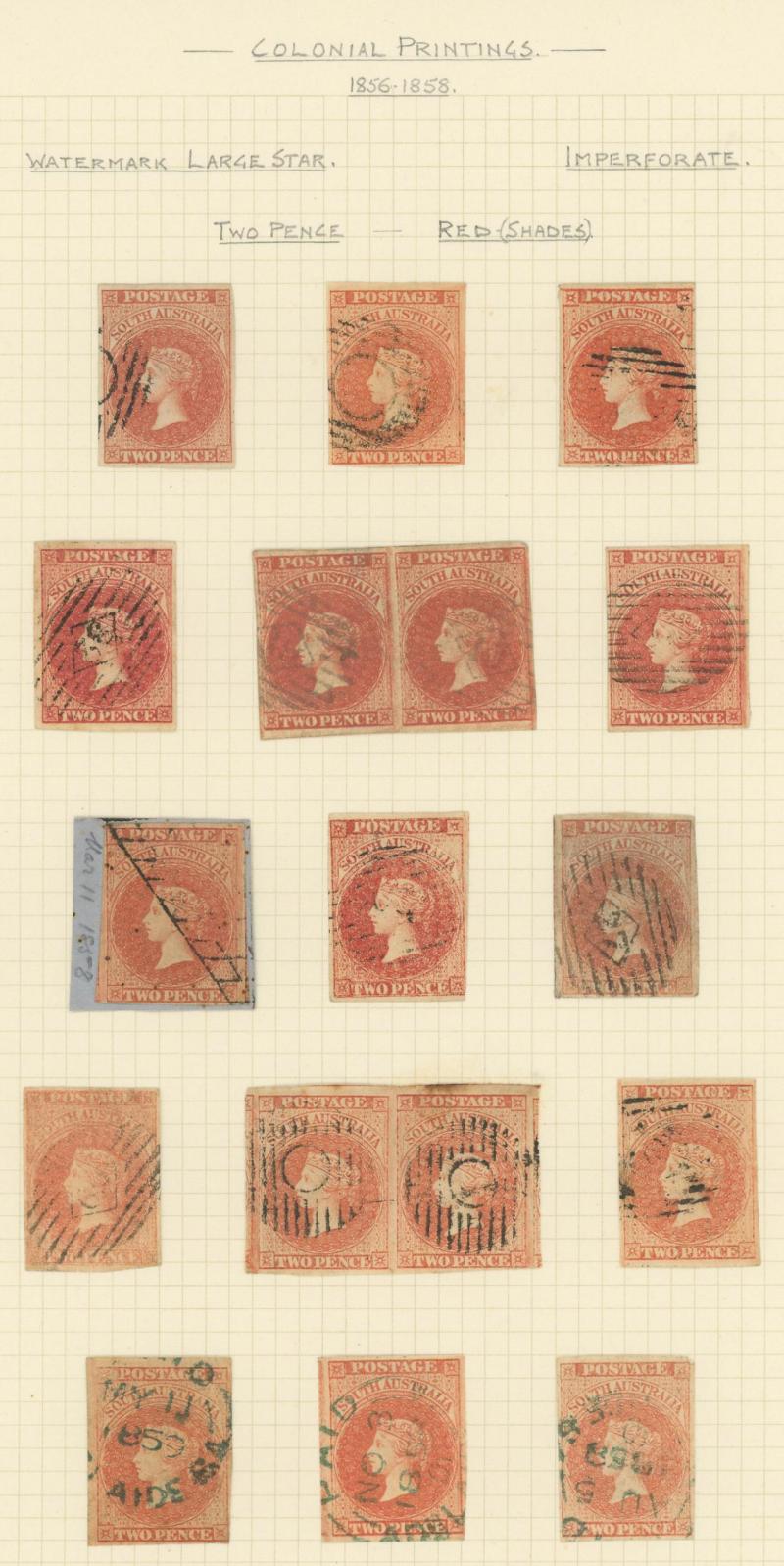 including a pair, and Adelaide Printings 1d x4 including a pair and 2d x17 including a pair, mostly with full or close-to full margins & generally very fine, Cat £10,000+.
