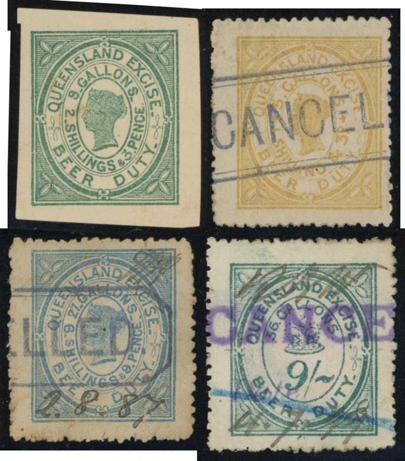 REVENUES: Beer Duty selection with BOTTLES 1885 imperf proofs of 6d (CTO) 1/- 2/- & 2/3d and issued stamps six values to 6/6d -