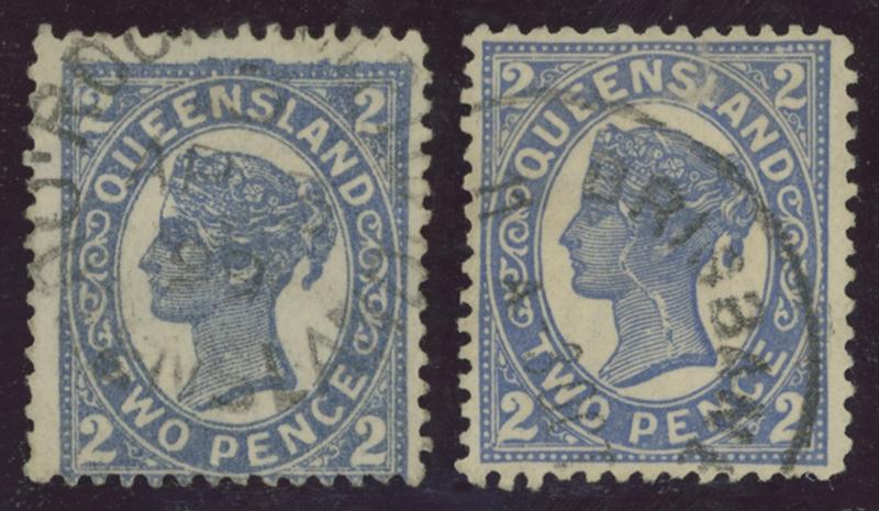 1897-98 Figures in All Corners 2d blue with Major Cracked Electro Vertically from the Queen's Brow to the Base of Her Neck ACSC