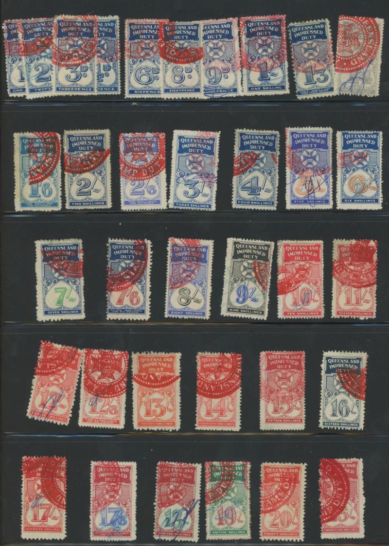 REVENUES: 1939 Impressed Duty 1d to £1000 apparently complete, a few with pen cacnels and all with embossed cancels in red,