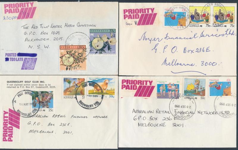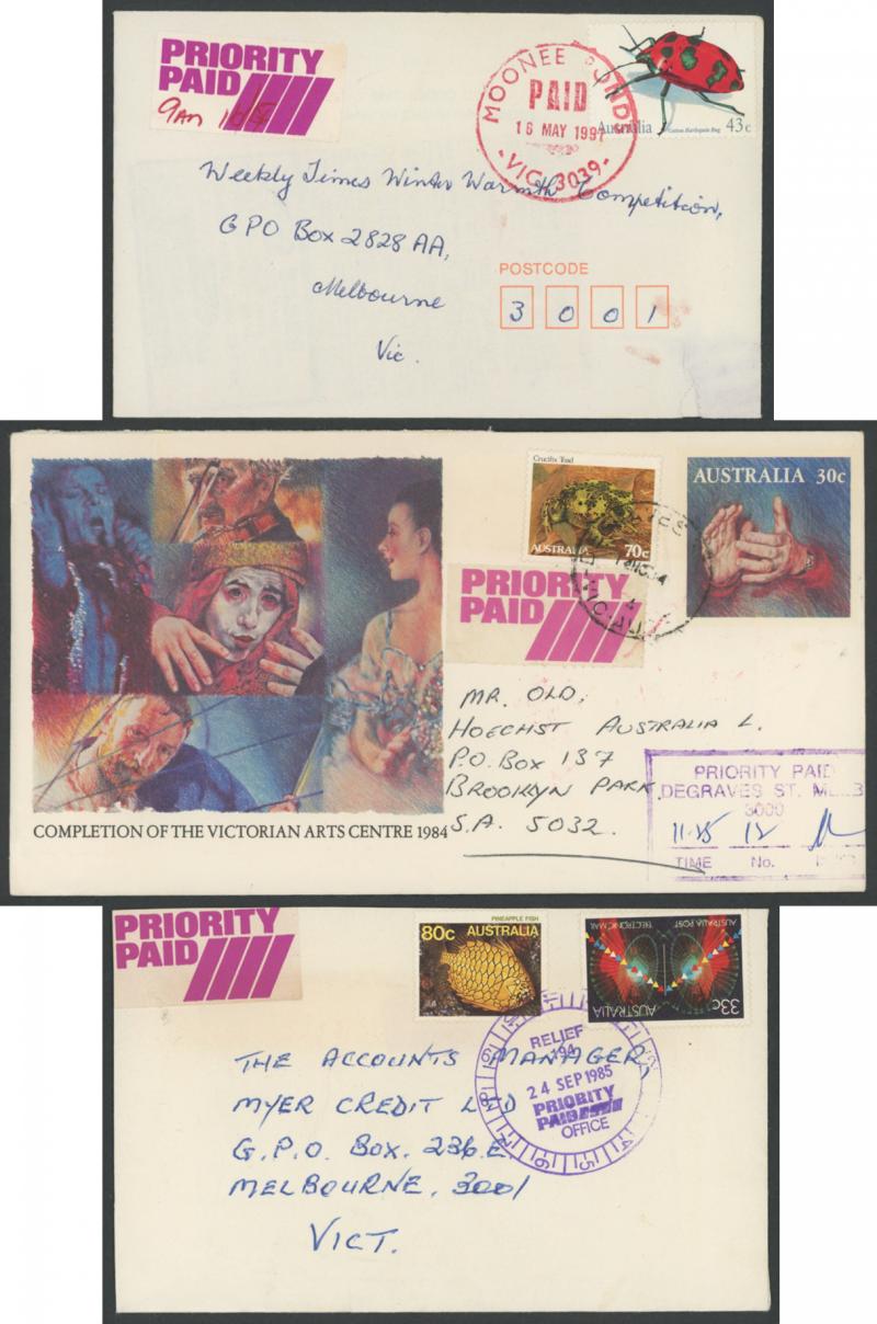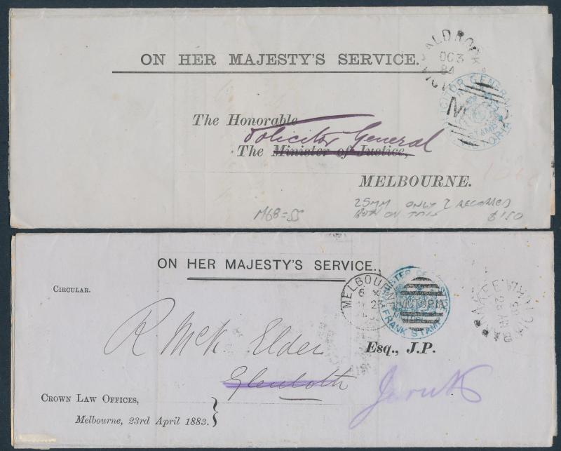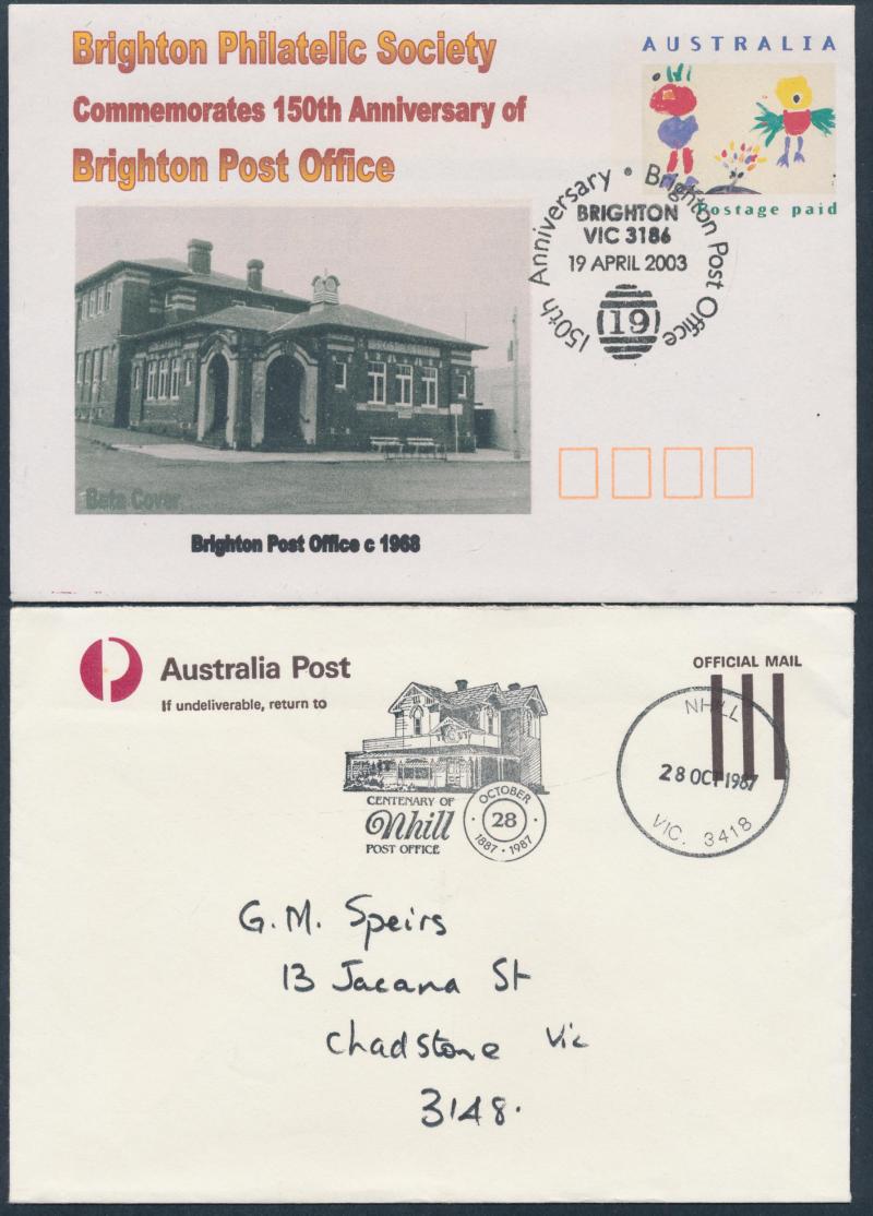 'M.O.O./ELIZ ST/MELBOURNE' (1945), superb oval 'POST OFFICE/ ELWOOD S3' (1964), triple-oval 'KERANG/VIC' (1940, OHMS registered), etc, mostly fine to very fine.