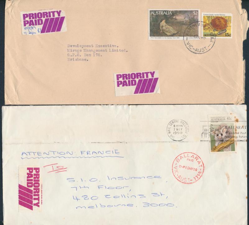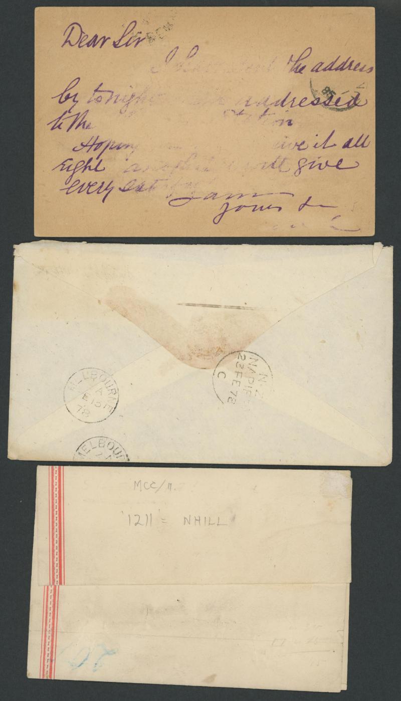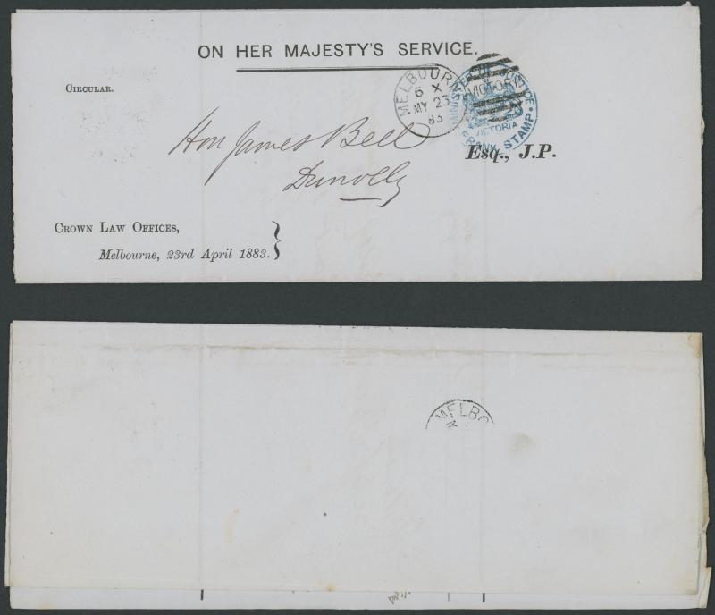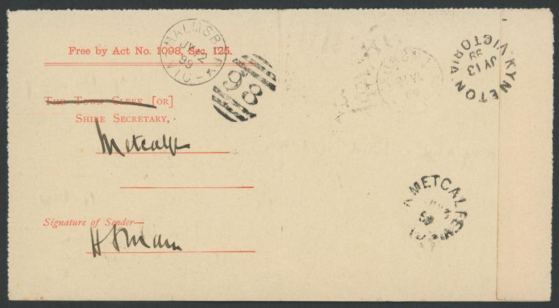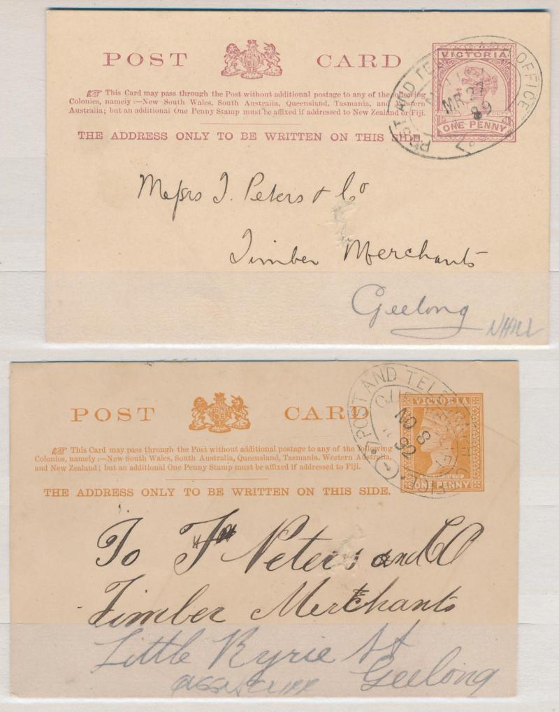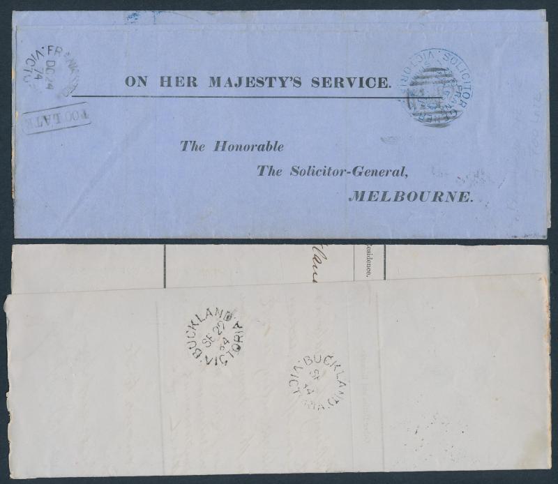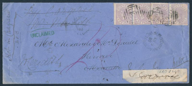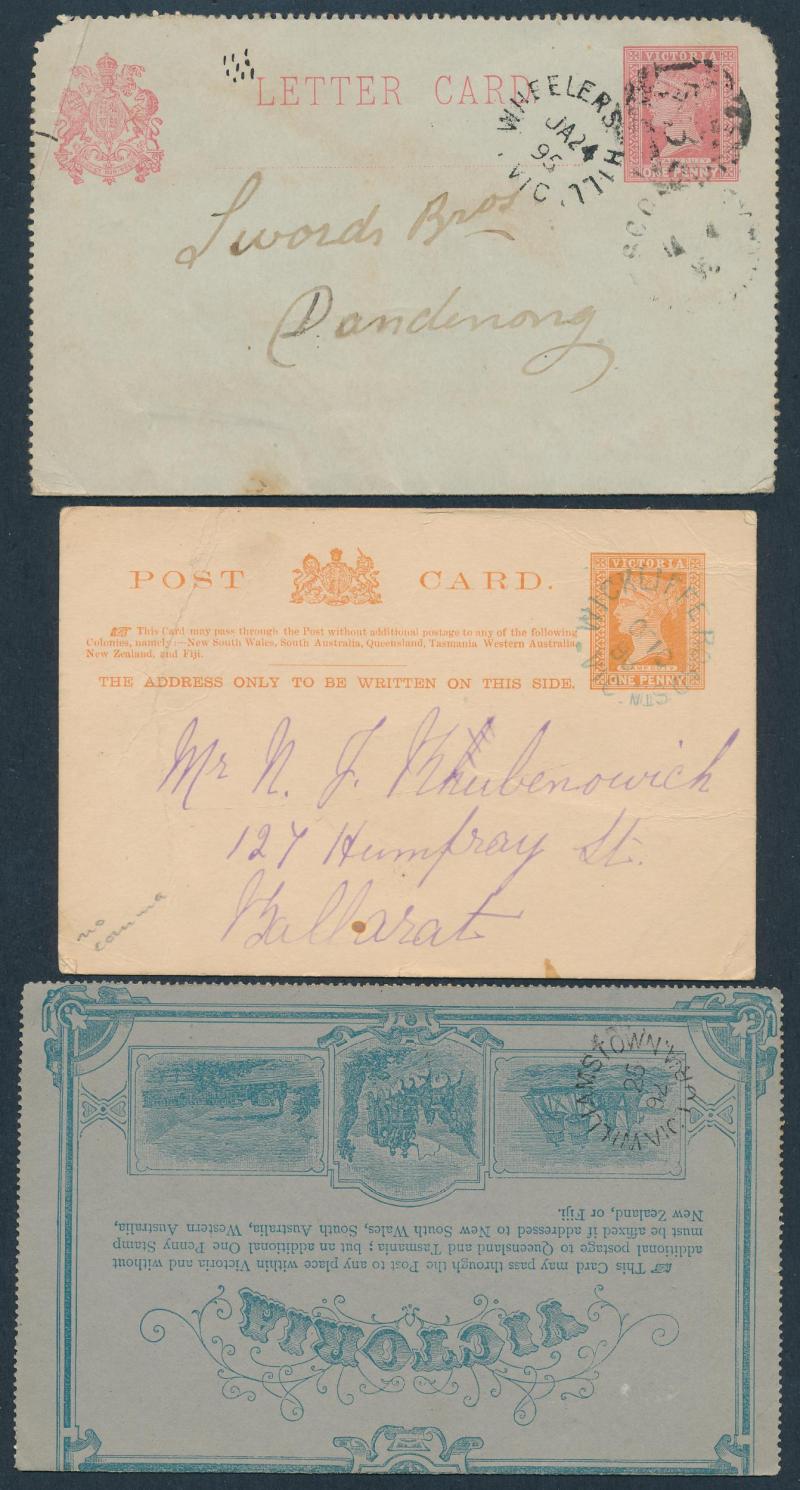 TERRICK'), 'BARRY'S REEF', 'SHIP LETTER/FREE/BELFAST VICTORIA' in red, 'BOWEYA', 'BUCKLAND', 'DARGALONG', 'DURDIDWARRAH' (registered, with 'STEIGLITZ' backstamp), framed 'PAID AT GEELONG' (on 1895 wrapper-front), 'GRIFFITHS POINT' (with superb BN