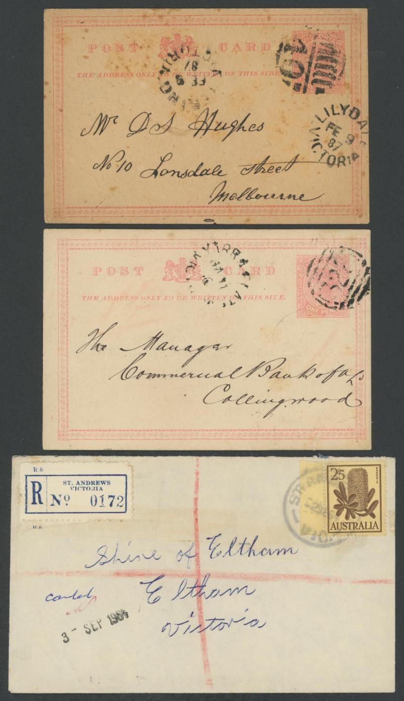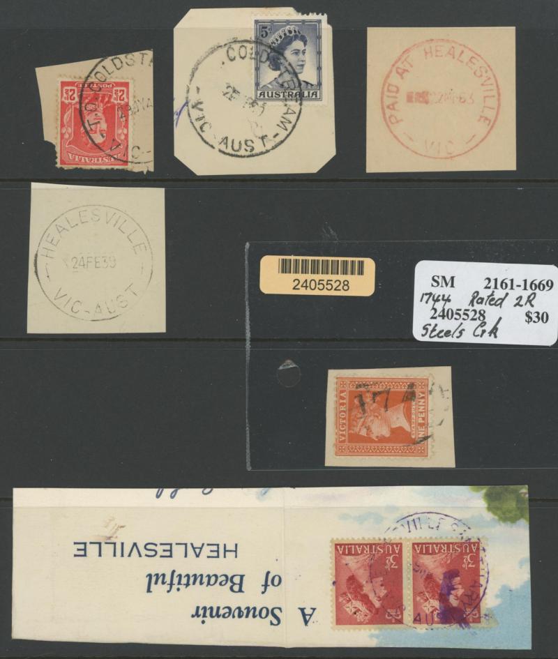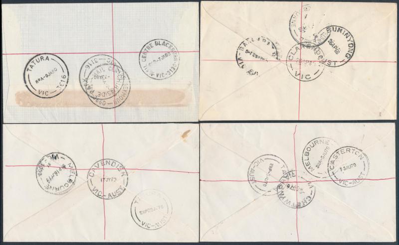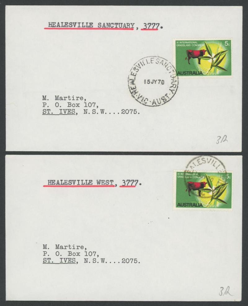 ANDREWS/2SE64/VIC.' registered, 'HEALESVILLE SANCTUARY/15JY70/VIC-AUST' & 'HEALESVILLE WEST/15JY70/VIC' (both philatelic), etc.
