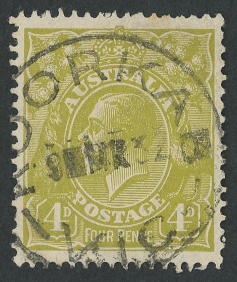 Koorkab (1): 'KOORKAB/9MR32/VIC' largely very fine strike on KGV 4d olive. Rated RRRRR. PO 14.5.1928; closed 26.3.1936. Found by us
