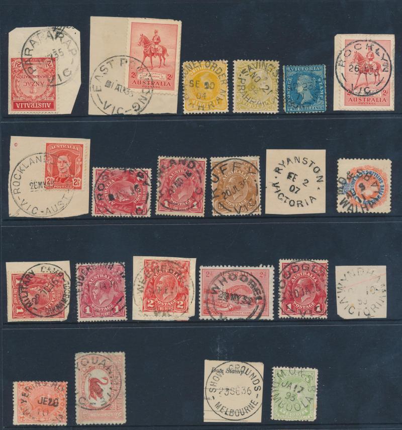 Selection mostly on Kangaroos including superb 'MAIDSTONE/22NO13/[VIC]' (the only recorded example) & light 'WOOD'S P[OINT]' on