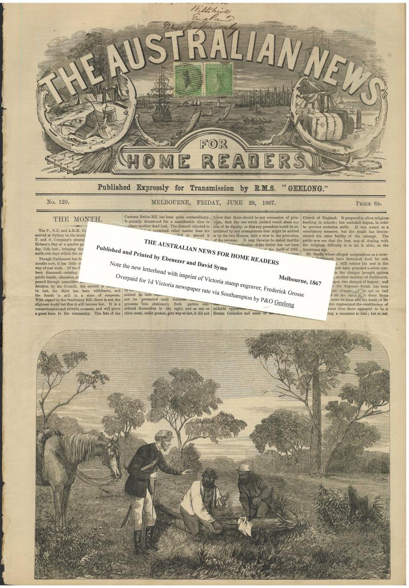 1867 (June 28) 'The Australian News' with 'Trade & Commerce' banner and an untitled scene of a Police Trooper & Two Black Trackers