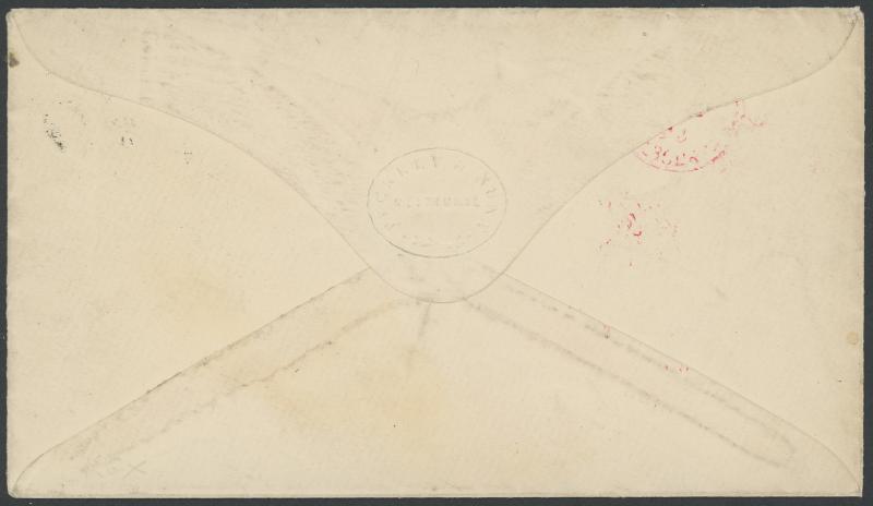 rate to Naracoorte (South Australia) but unstamped, the inter-colonial address overlooked at the GPO where a largely very fine strike of the rare 'DETAINED FOR/1 PENNY POSTAGE' handstamp applied and initialled, 21mm 'DEAD LETTER OFFICE' backstamp of