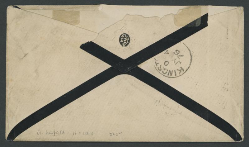 three very fine singles tied by Melbourne duplex, 'KINGSTOWN/JY4/76' arrival backstamp, minor faults. Ex Guy Linfield and Hugh Freeman: sold at our auction of 23.9.2011 for $529 (Sale 168 Lot 775). Geoff Kellow at page 190 states "Covers are