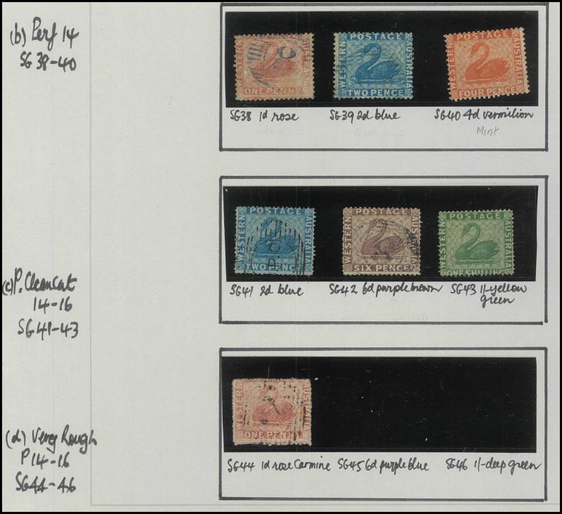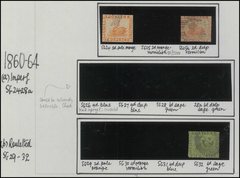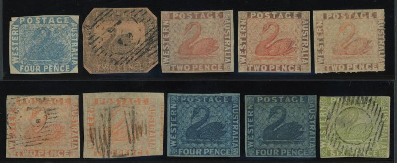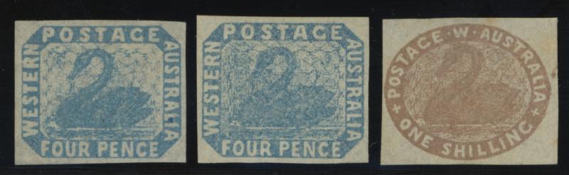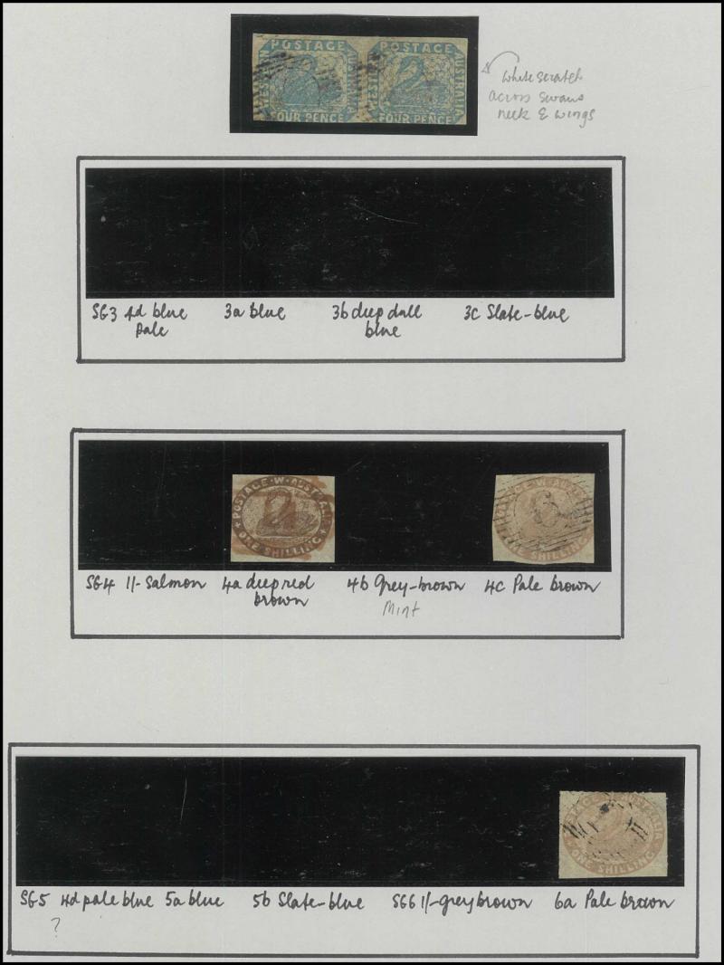 Imperforates group comprising Swans 1854 'Penny Black' used, 1854-55 Lithographs 4d blue unused plus used x8, 1857-59 Hillman