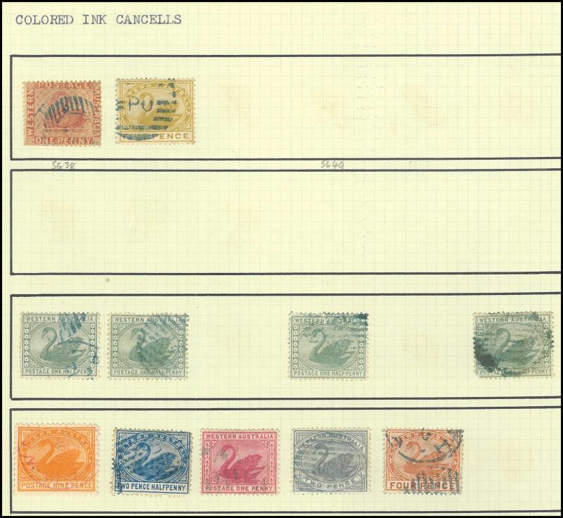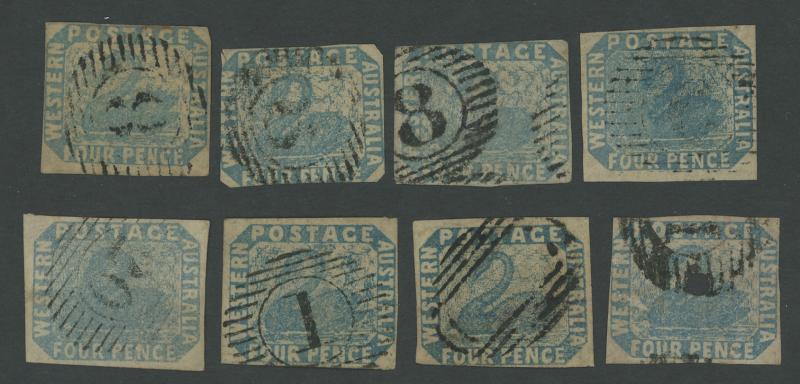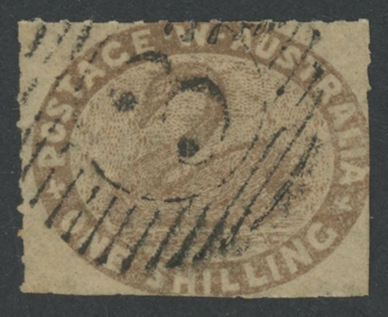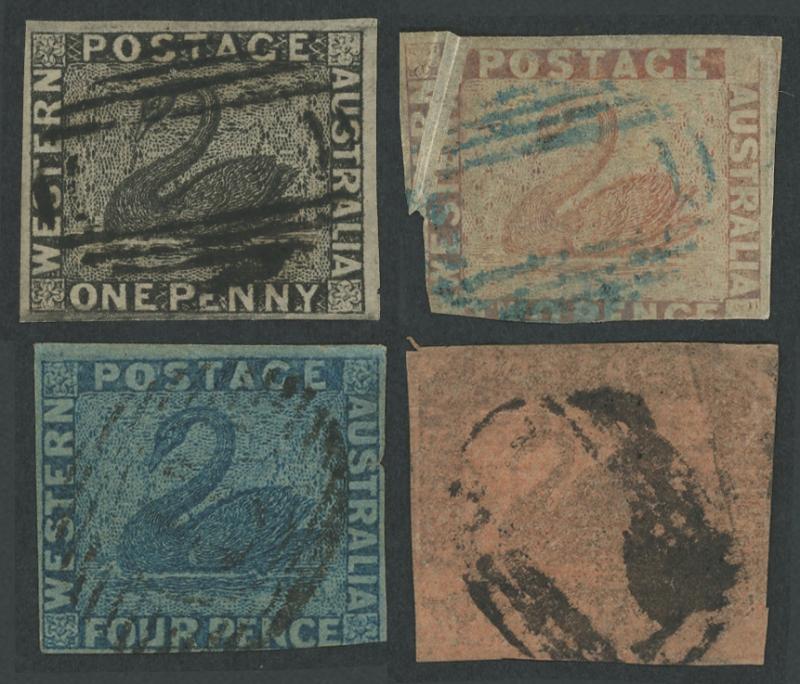 1854-55 Lithographs Imperforate Swan 4d blue, margins just clear - at lower-left - to good, light 15-bar '5' cancel, Cat £250. (Image1) (Image2)