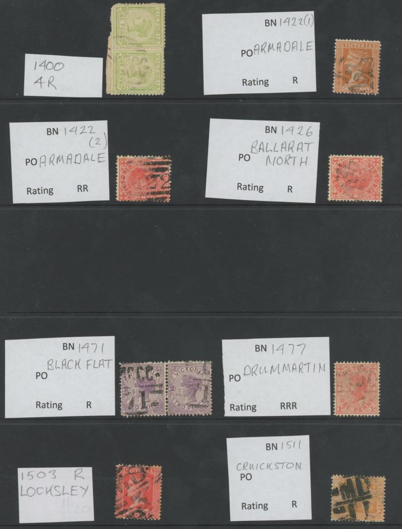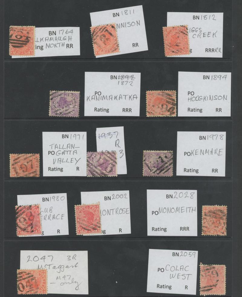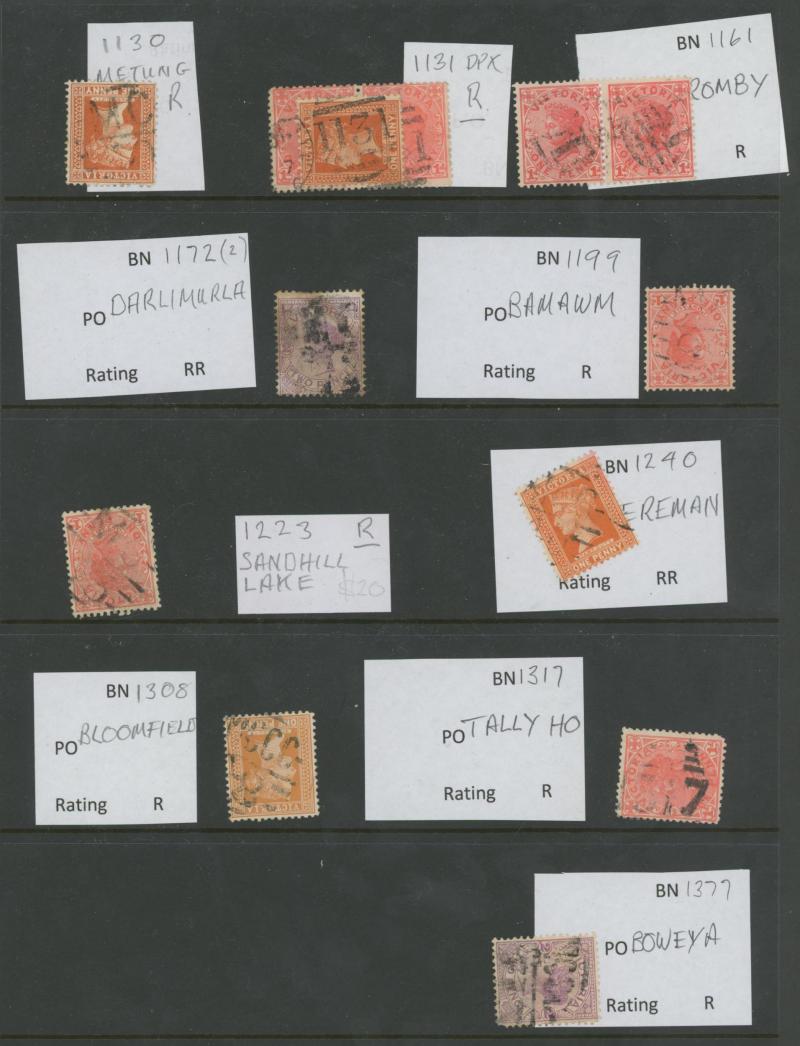 simple "Not known" but also "Gone Away", etc, some postmark interest, condition rather mixed (19); also 1874 outer portion with rare 'CAMPASPE' (faint but evident) & 'CLARE INN' cds, 1883 form with rare 'BUNGAREE' and ERDs for 'DUNNSTOWN' (poor) &