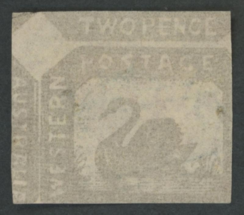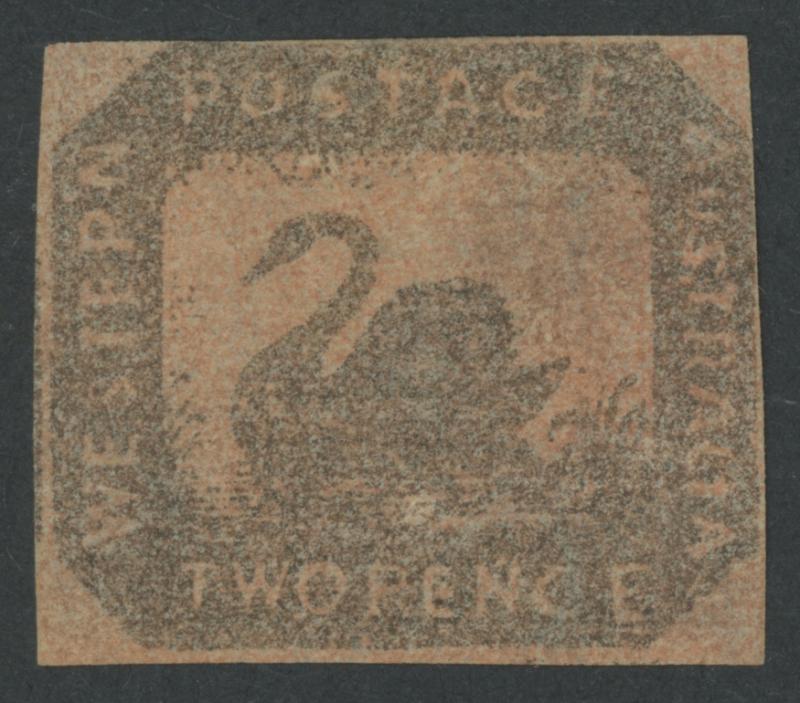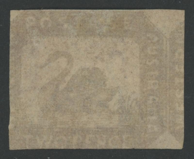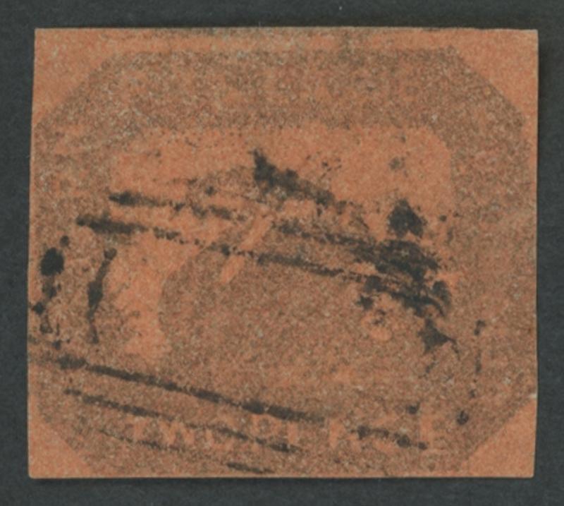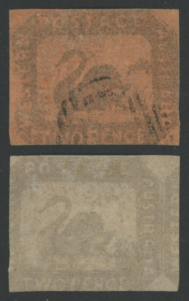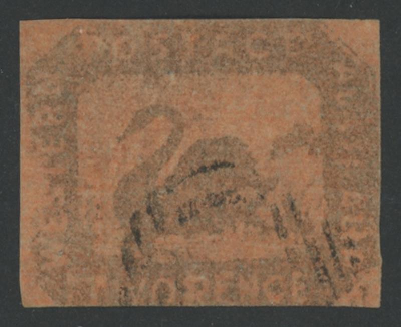 1857-59 Hillman Lithographs Imperforate Swan 2d brown-black/Indian red Printed on Both Sides SG 16a the impression on the 'reverse'