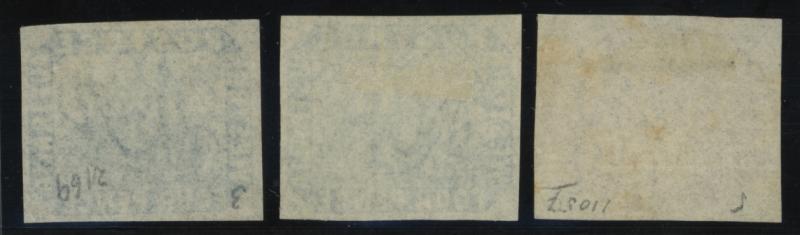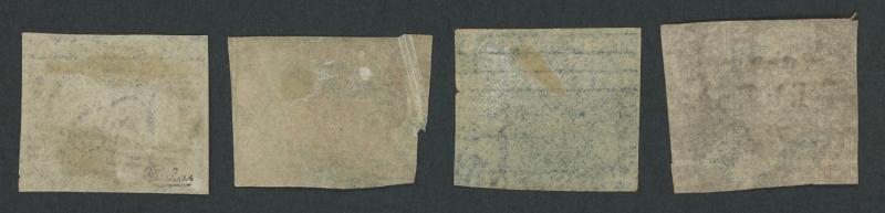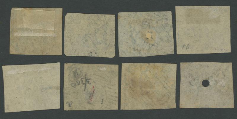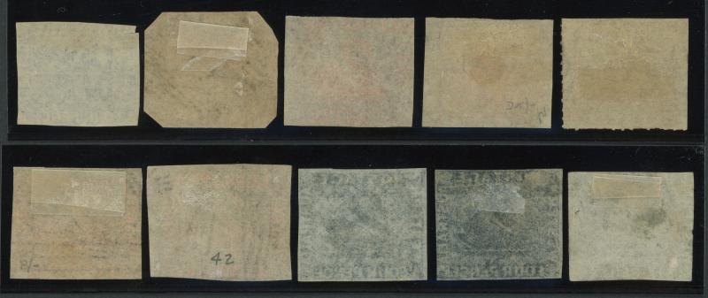 Lithographs 2d x2 one Printed on Both Sides SG 15a with heavy cancel (Cat £900; RPSL Certificate 1970), 1860-64 Printed in the Colony 2d unused x3 (one rouletted; all a little oxidised) & used x3 one with Pre-Printing Paper Fold and 4d blue unused x2
