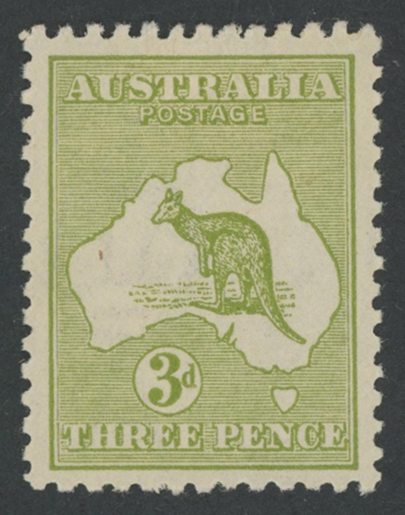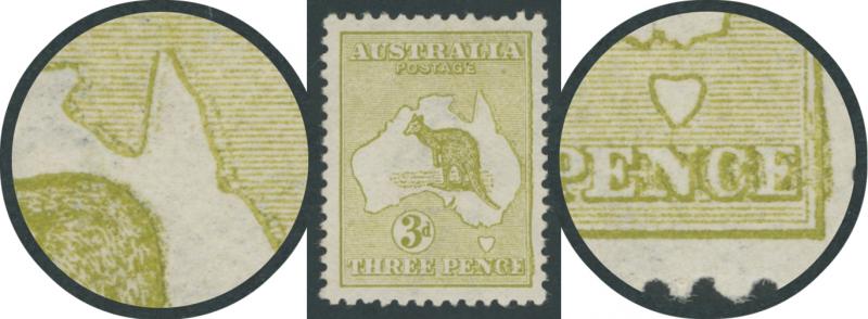 3d olive Die I with Prominent Kiss Print ACSC 12Acb, well-centred, lightly mounted, under-catalogued at $1750. The doubling of the
