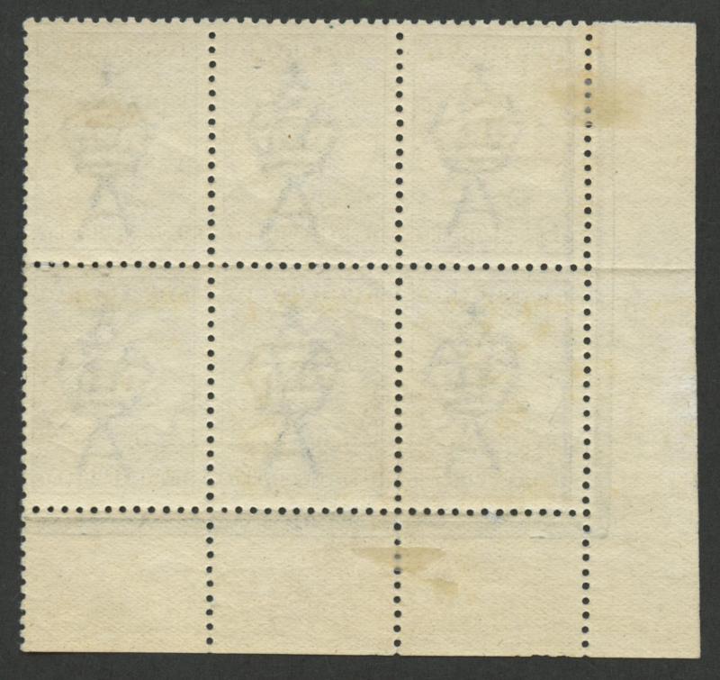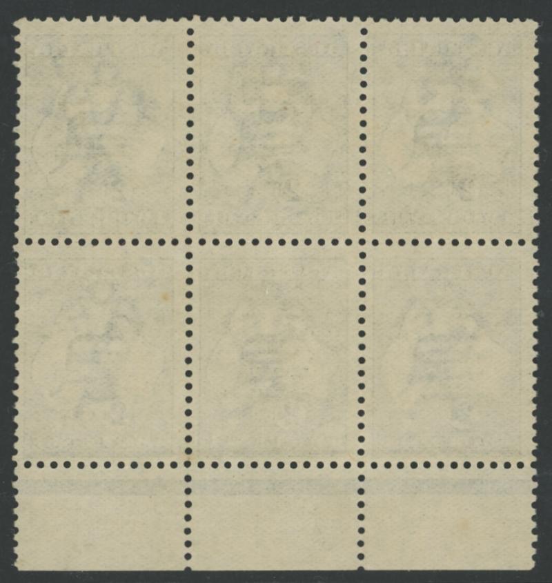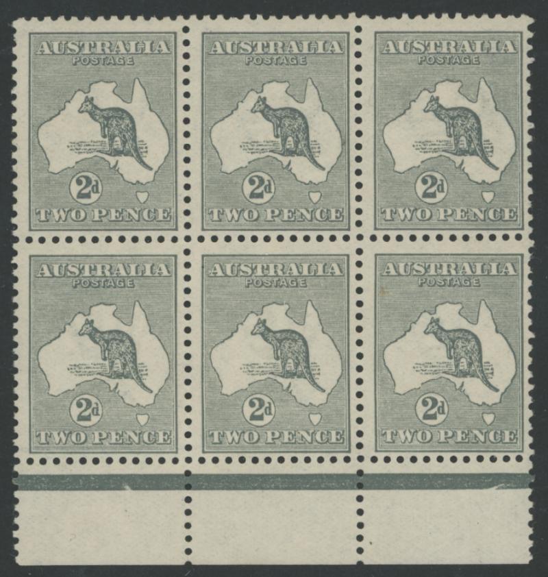2d grey ACSC 5 (SG 3) block of 6 (3x2) from the base of the sheet with 'Jubilee Line' in the margin, unmounted, Cat $2100+ for