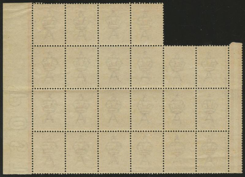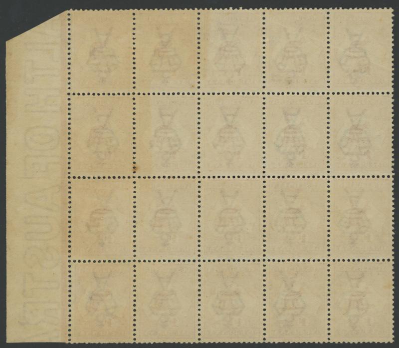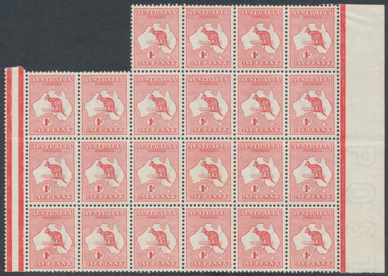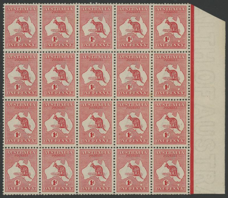 1d red Die II with the Watermark Inverted ACSC 3a (SG 2dw) marginal block of 20 (5x4) from the right-hand side of the right pane,