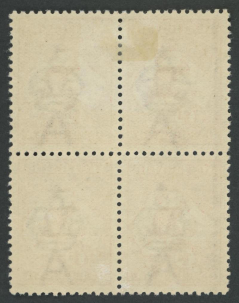 1d red Die II SG 2d Plate E block of 4 the upper-left unit with Extra Island 'Two Tasmanias' (First State with the Shading Lines
